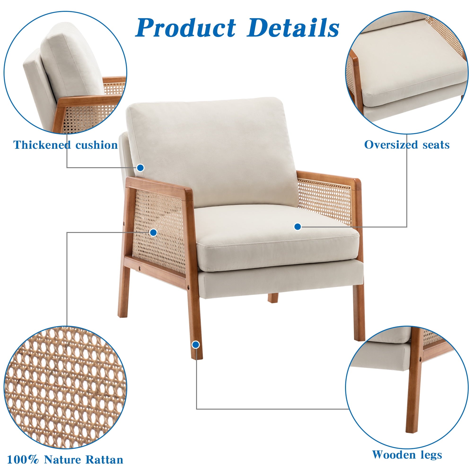 🏆【Mid Century Modern Accent Chair】This stunning high back beautiful chair with natural rattan arm is timeless yet so of the now, with its sensually curved design and spotlight on snugness.With ample room to wriggle into, our tufted accent lounge chair will become your new favorite chill out zone.