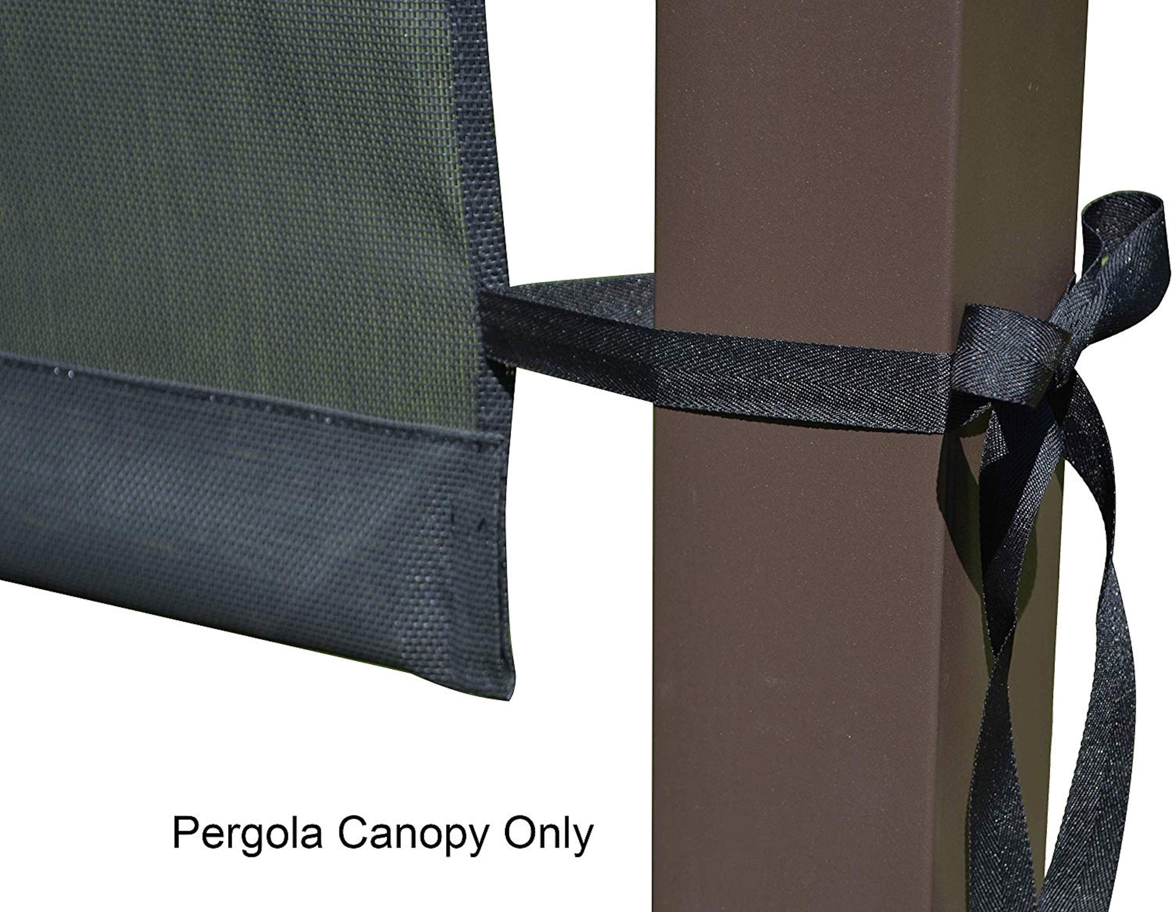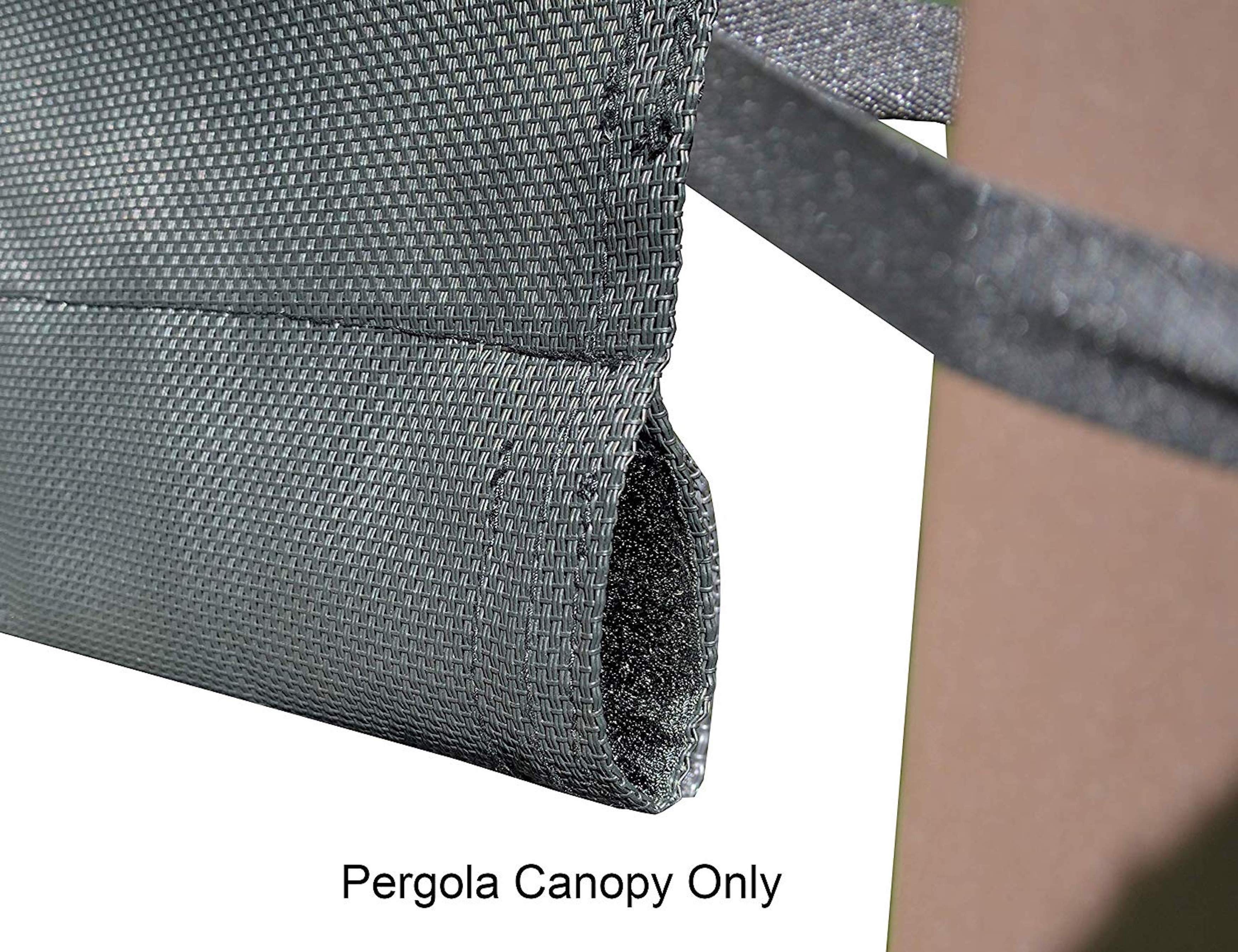 Rejuvenate your pergola with a new replacement canopy top. With a quick installation of a new canopy, your pergola will look brand new again. Fits for most of 10-ft x 10-ft pergola models but not all of them. Please measure your structure carefully against these dimensions. Differences in dimensions can cause under or over coverage from sun!!! This pergola replacement canopy is designed to shade your existing metal or wood pergola. This fabric is an outdoor Polyethylene (PE) fabric. A mesh screen porous fabric. Wind and water can go through the canopy. [UPGRADED DESIGN] Ties connected with canopy top. Use it with or without weighting rods. Easy and convenience to tie with your pergola frame. Pergola Canopy Top with Ties for your existing metal or wood pergola frame. Please do the measurements of your pergola prior ordering.● Color: Gray.