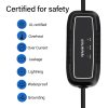 Portable electric car charger provide up to 16Amp power can help you greatly save charging time, it is not only light, but also has good durability, our EV charger has passed the CE certification in line with the safety guide, with overvoltage, overheating, overcurrent protection and other functions. And soft cables can be easily stored even on cold winter days.