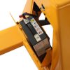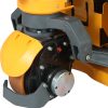 - Push-button lift control and forward/reverse thumb wheels on electrical pallet jack handle