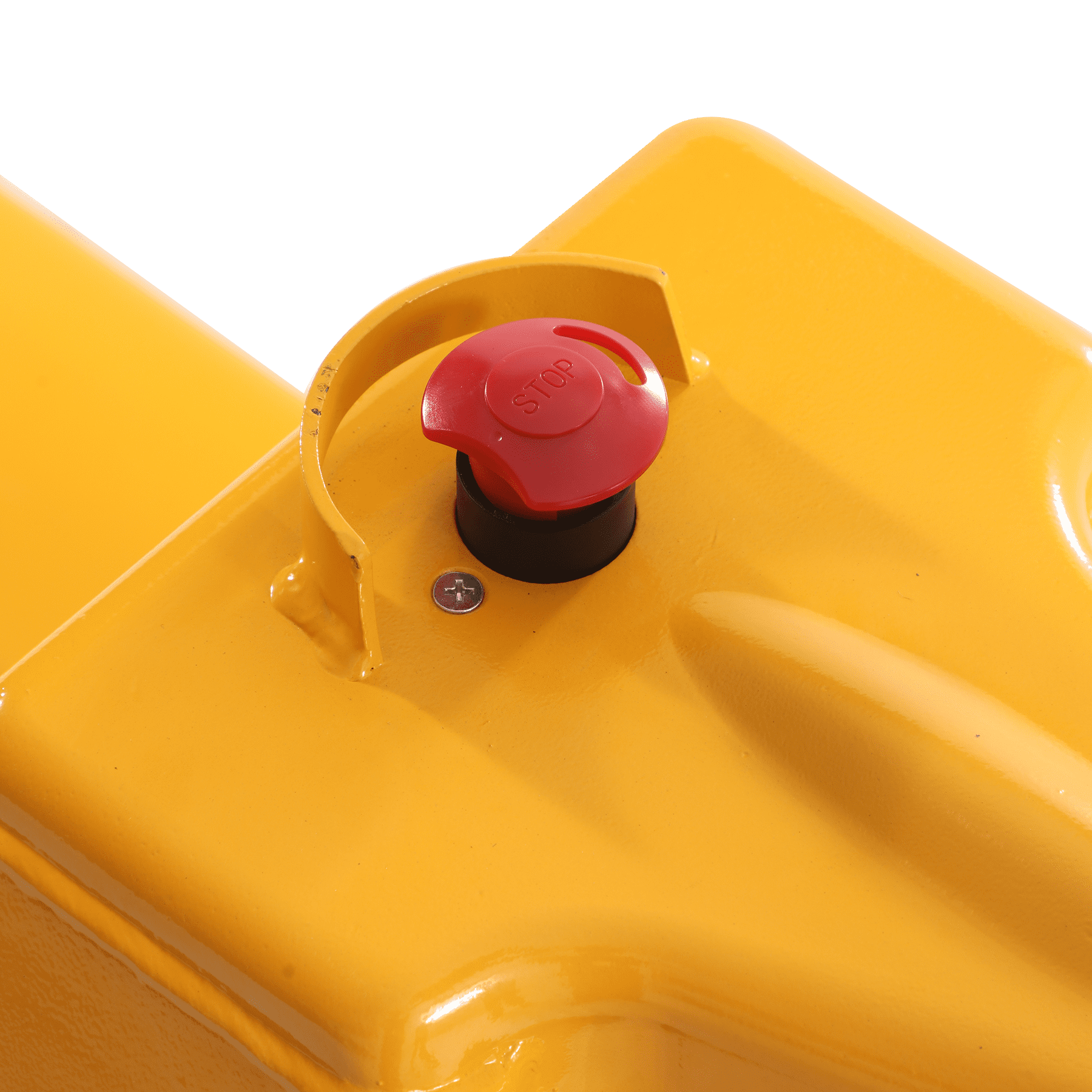 - Connect the battery and pull up on the red emergency stop button to turn on the power.