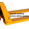 - Yellow manual pallet jack forks lowering speed is controllable, with overload valve to avoid overloading