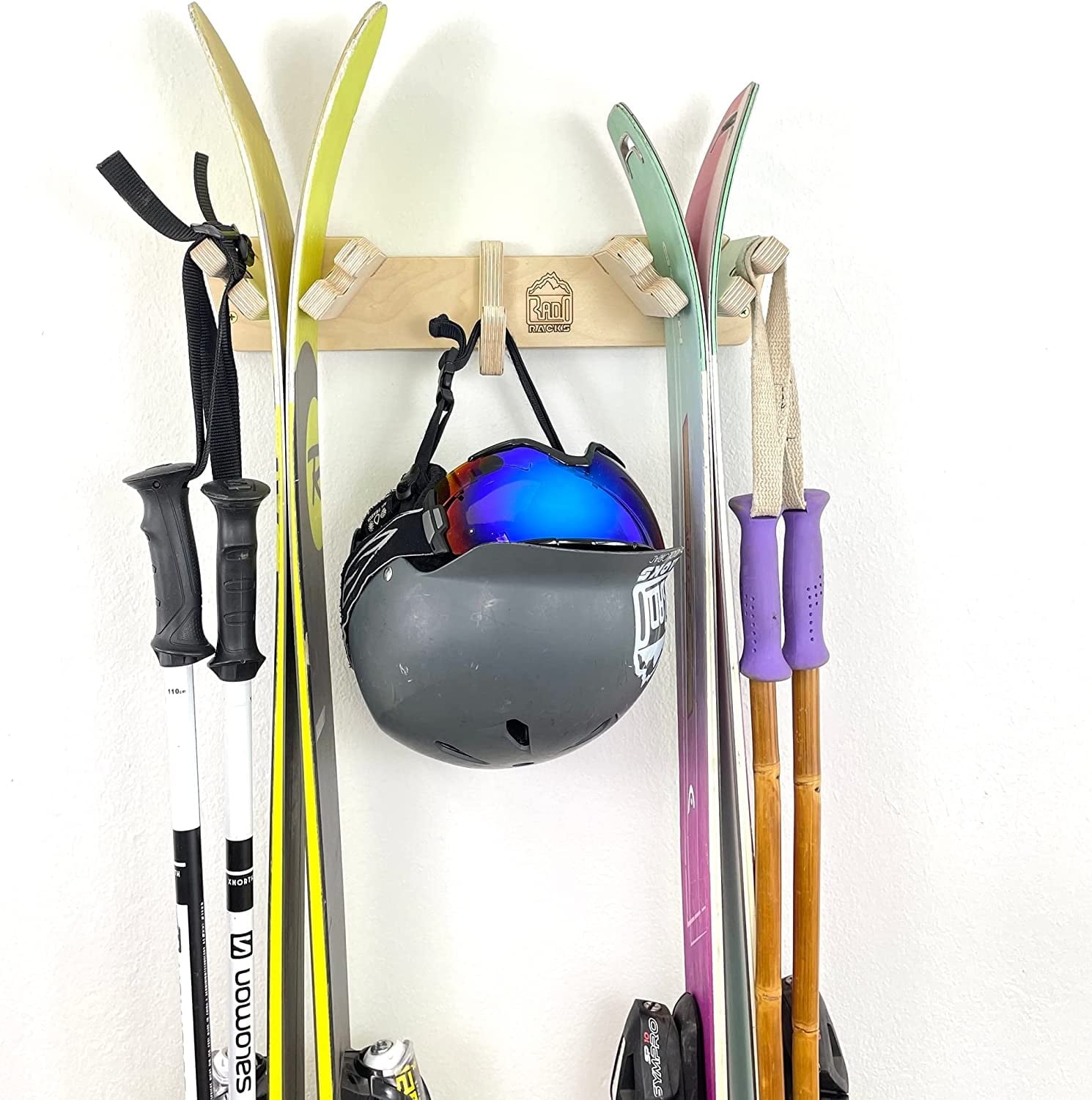 The Apres vertical ski storage rack is an amazing ski storage rack can do it all! It can holds skis, poles, helmets, backpacks, and much more! If you have lots of ski gear this rack is what you need. Perfect for a family or someone who just loves gear. There is nothing this rack cannot handle. Made in Colorado from extremely strong Baltic birch ply this rack is the real deal. Comes with everything you need to have it up on your wall in seconds. We offer a lifetime warranty and hassle-free returns. Give this rack a shot!