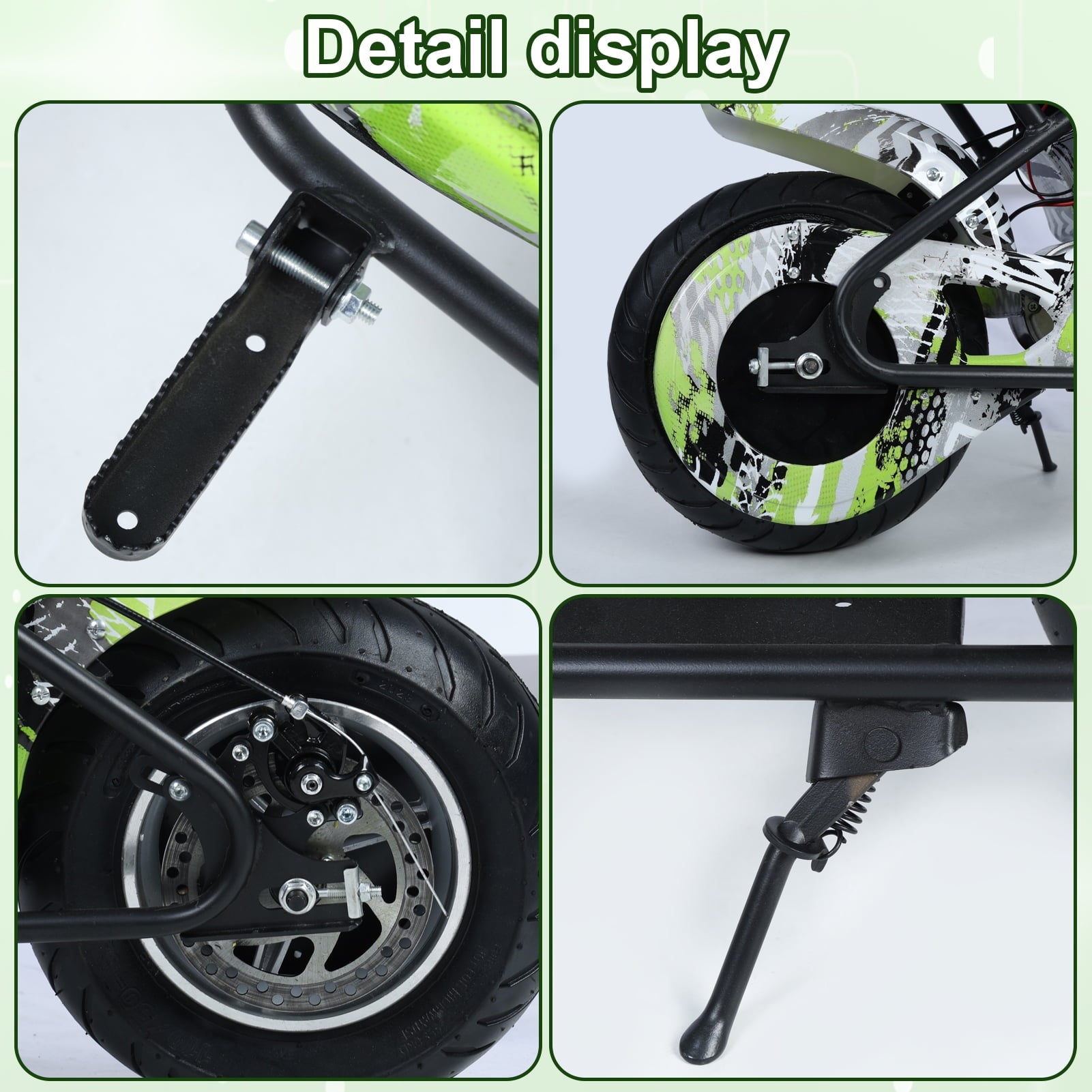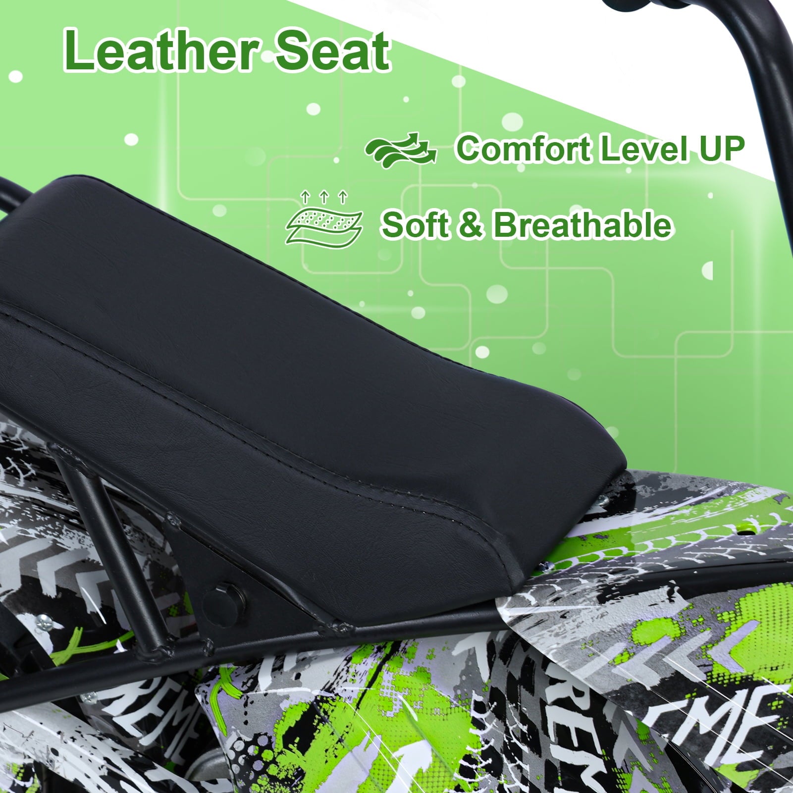 Rubber Tires & Faux Leather Seat: This dirt bike is equipped with high-quality rubber tires. The diameter of the wheels is 8″, and the rubber tires are more wear-resistant. The seat is made of faux leather seat with high-density sponge inside, which is softer, breathable and conforms to the ergonomic design. Bring children to a more comfortable and extreme experience while driving.