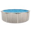 • Round above-ground pool features an 18-foot diameter and is 52 inches deep