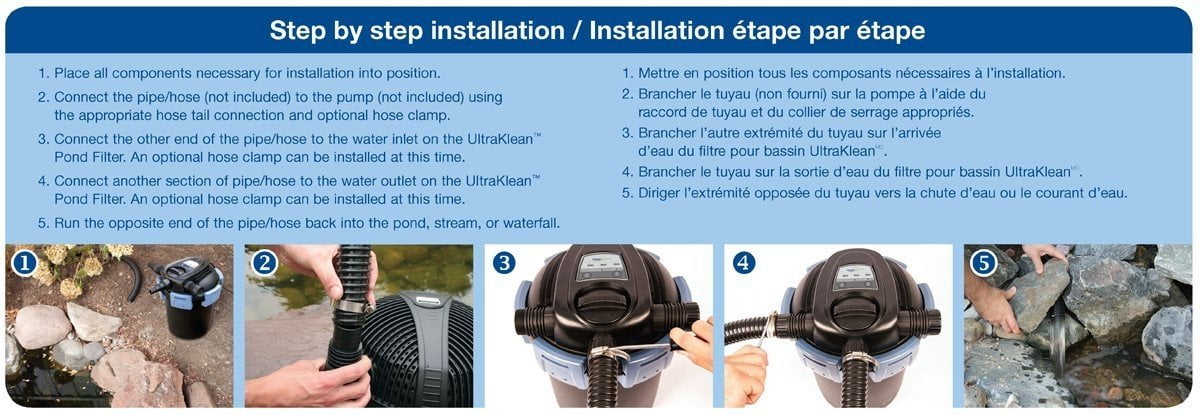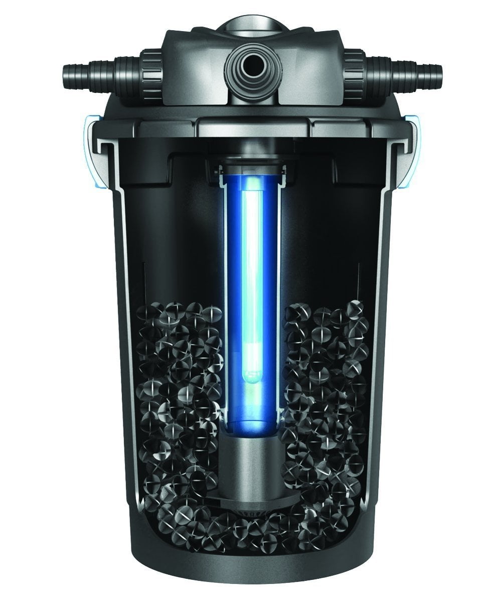 - High-output T5 ultraviolet clarifier eliminates green water; Ultraclean Bio Balls efficiently trap dirt and debris