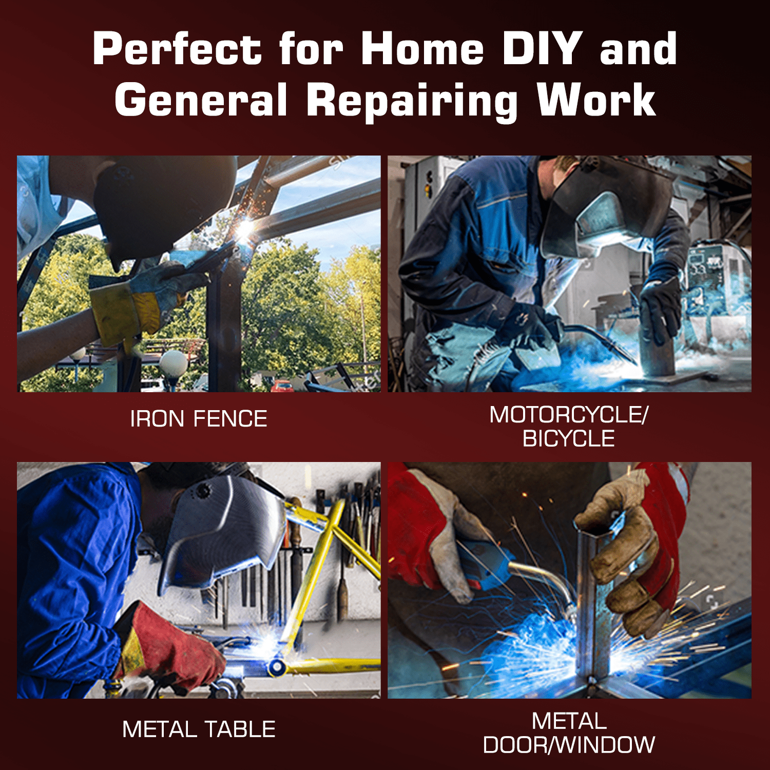 SYNERGIC CONTROL: The recommend current and wire feeding speed will be automatically matched after selected diameter of the welding wire(you can choose .030”/.035”/.040″ flux core wire). The 110V Wire welder is easier for beginners or those that are learning to weld and want to make small repairs around the house.