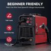 Automatically matches optimal current and wire feed speed when selecting welding wire diameter (.030″/.035″/.040″). Compatible with both gas and gasless MIG welding. This intuitive system simplifies operation for beginners while enabling efficient repairs and fabrication tasks.