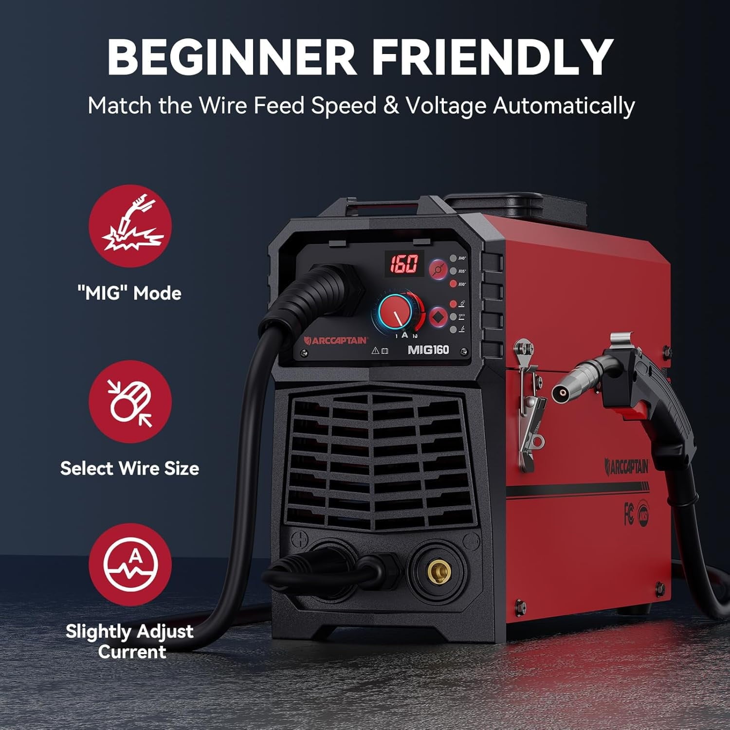 Forged in ARCCAPTAIN’s German-engineered laboratories, the MIG160 welder embodies our “Precision for Pioneers” ethos. This 11.8 lb powerhouse merges industrial-grade Gas/Flux-Core/Lift TIG*/MMA capabilities with patented Synergic Control – auto-optimizing settings for .030”/.035”/.040” wires. Tested through 200+ extreme-condition cycles at our Arizona Proving Grounds, its dualvoltage (110V/220V) architecture delivers consistent performance from farm repairs to artistic metalworking. Trusted by 370K+ creators worldwide, ARCCAPTAIN fuses aerospace-grade safety systems with DIY accessibility, ensuring professional results wherever your craft takes you.