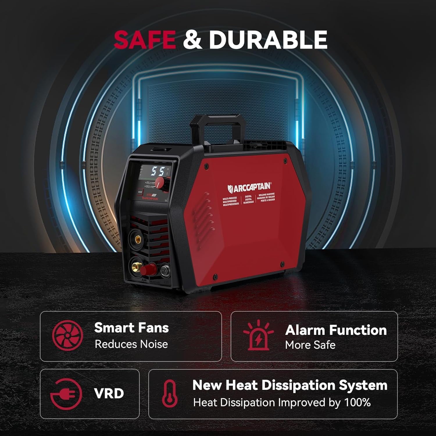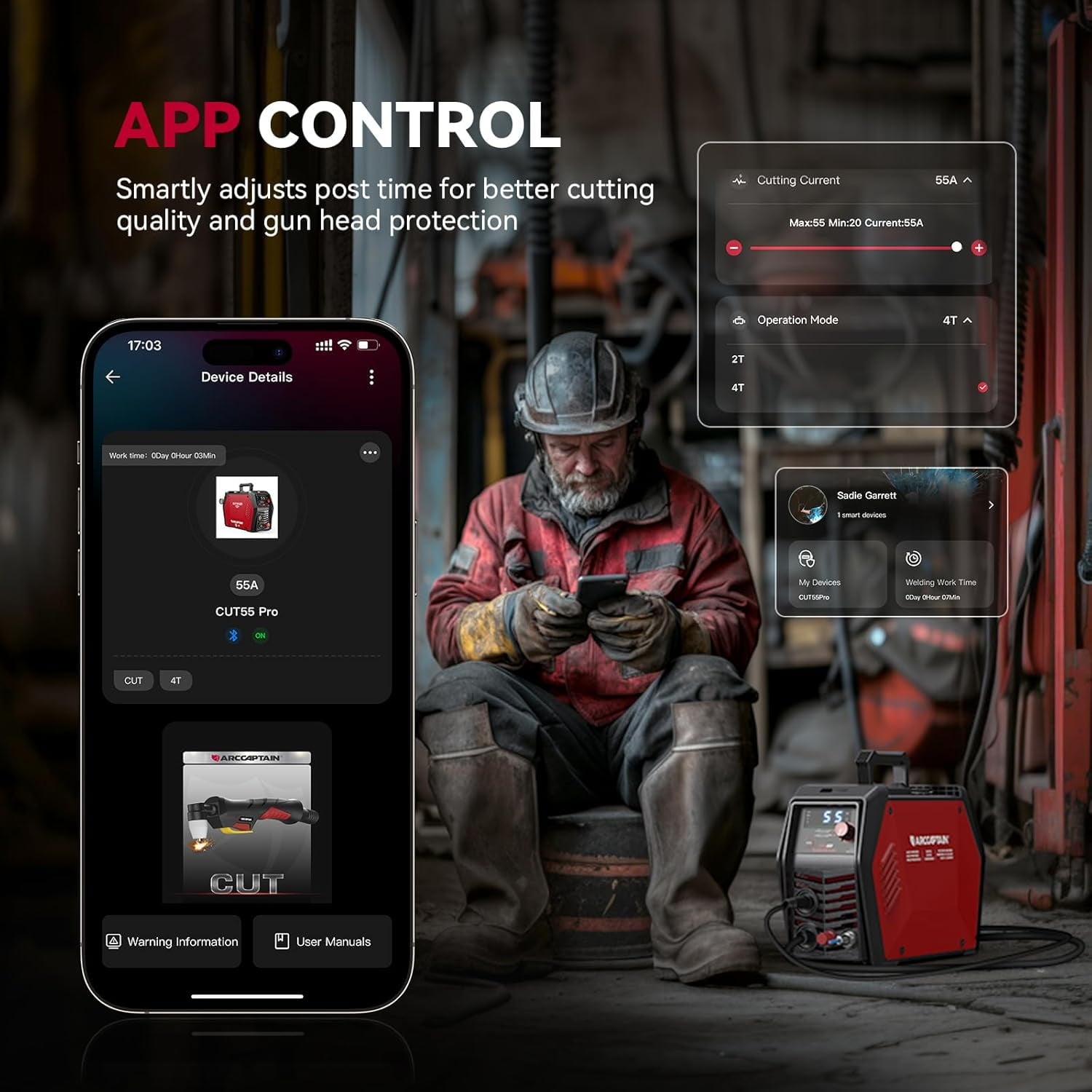 The ARCCAPTAIN CUT55 Pro plasma cutter delivers precision and performance with cutting-edge MCU technology. Capable of cutting up to 20mm, it features a pilot arc function for non-contact starts, app control for remote operation, and an intelligent cooling