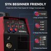 • Synergic & Manual MIG Modes: The synergic control automatically adjusts welding parameters like current and wire feed speed based on selected wire diameter and gas material, making it perfect for beginners. The manual MIG mode offers more customization for experienced welders, allowing for precise adjustments to meet specific welding requirements.