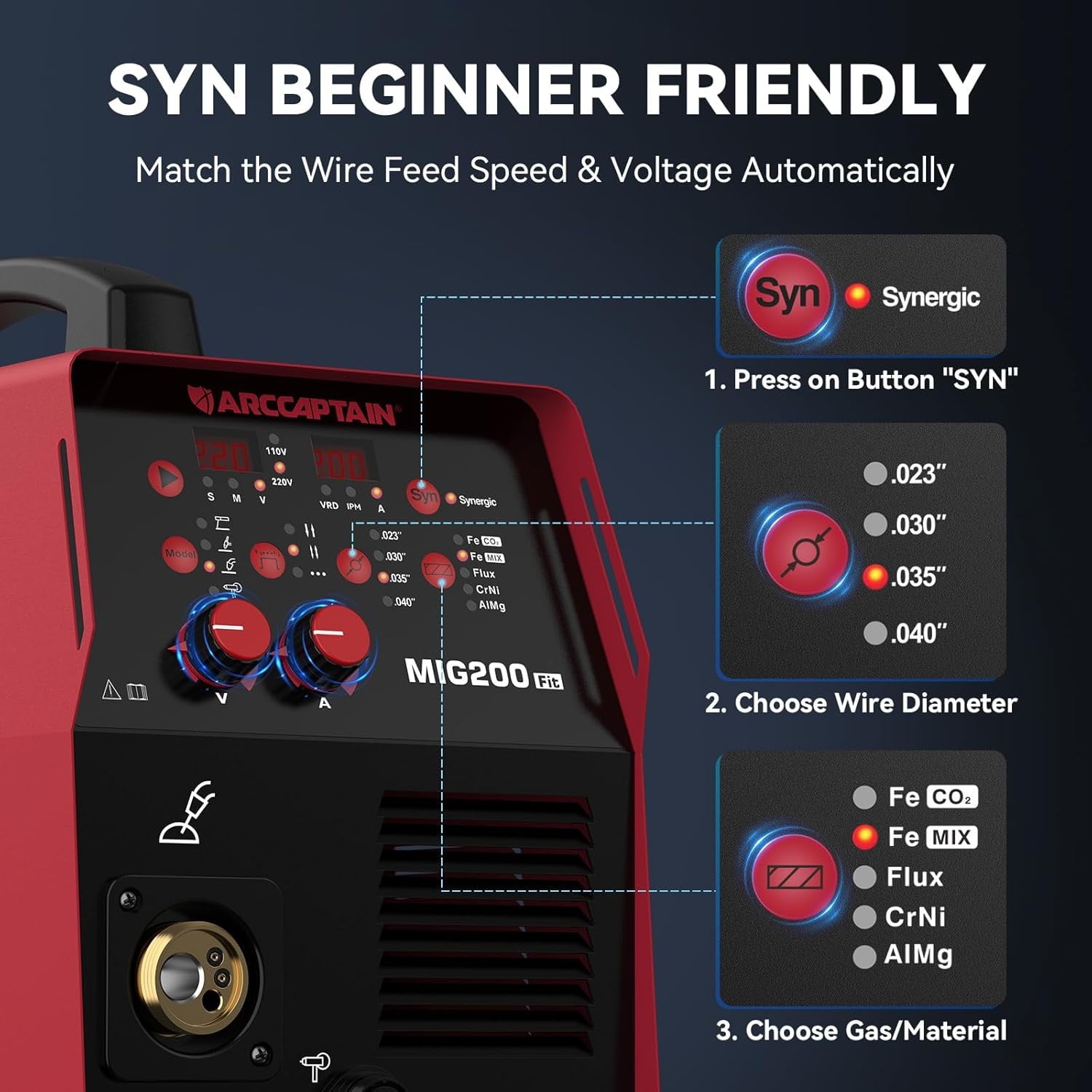 ARCCAPTAIN 6 in 1 MIG Welder, 200A Welding Machine Multiprocess 110V/220V, Flux Core MIG/Gas MIG/Lift TIG/Stick/Spool Gun MIG/Spot Welder with Synergy