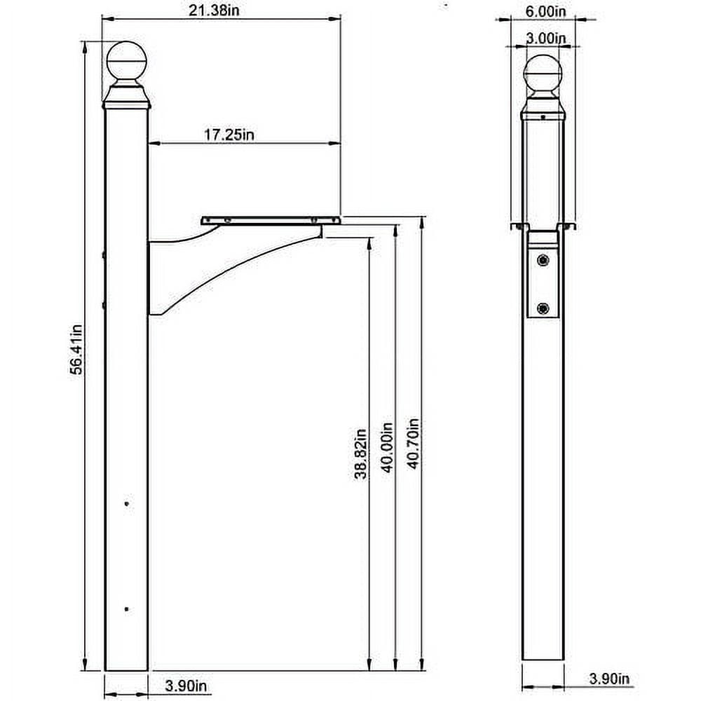 The Landover mailbox post is constructed of reinforced extruded aluminum and steel to resist rust and provide an extended service life. The decorative aluminum post and finial, with a steel cross arm, features a unique and stylish design that will enhance the curb appeal of any property. The Landover will accommodate any standard, large or extra-large mailbox. This post comes complete with a mounting bracket and mounting hardware, fashioned with a hollow stem to easily slide over a 4 in. x 4 in. wood post (sold separately) for quick, hassle-free installation.