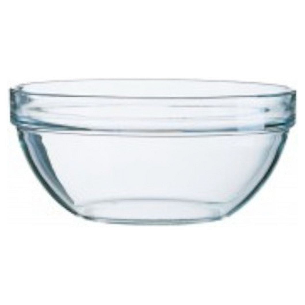 Fully tempered clear glass stackable bowls. Highly durable and functional ‐ equally at home in the front of the house or in kitchen prep. This collection of right sized bowls stack easily and securely and are offered in a variety of useful capacities from small condiments to large serving sizes. <>Model #: E9157<>Stackable<>Fully tempered<>5X more resistant to breakage<>Resistant to mechanical and thermal shock”