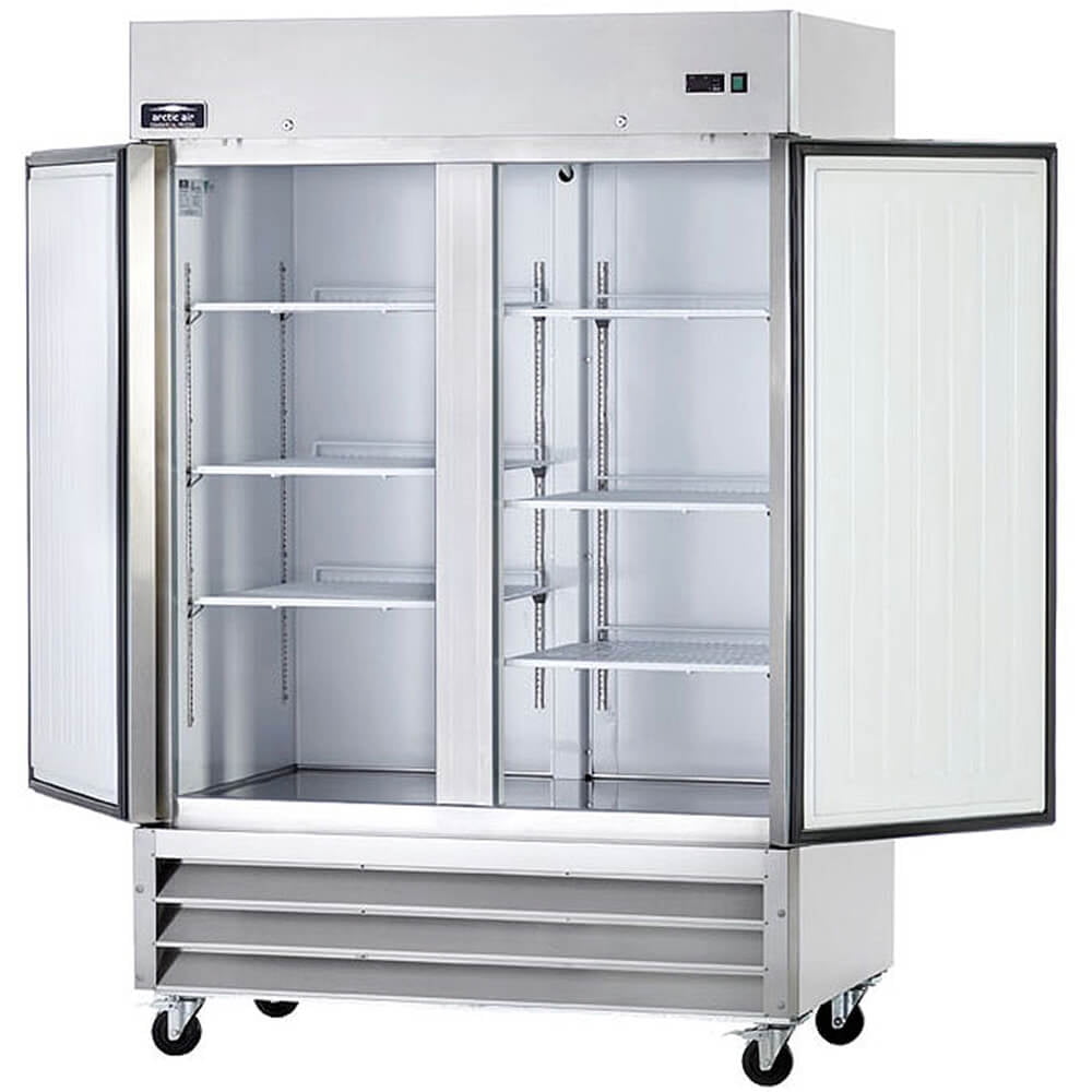 Arctic Air’s solid door reach-in refrigerators and freezers are designed to bring you real, commercial foodservice grade performance at a truly incredible value. All Arctic Air products are tested to NSF Standard 7 levels and must pass numerous quality control inspections throughout the manufacturing process. Our reach-in models are beautifully designed in smooth stainless steel for a look that you would be proud to put in any commercial application. More importantly, our products have many features that are desired in today’s commercial food service market. Features include high output fan motors, an electronic thermostat with an external digital display, bottom mounted compressor, and a front-accessible, bottom-mounted condensing unit mounted on a slide-out rack for easy maintenance/cleaning. Three epoxy-coated, adjustable shelves and locking casters come standard with all models. Doors are self-closing and lockable with foamed in place recessed handle. Magnetic door gaskets are removable and replaceable without tools.