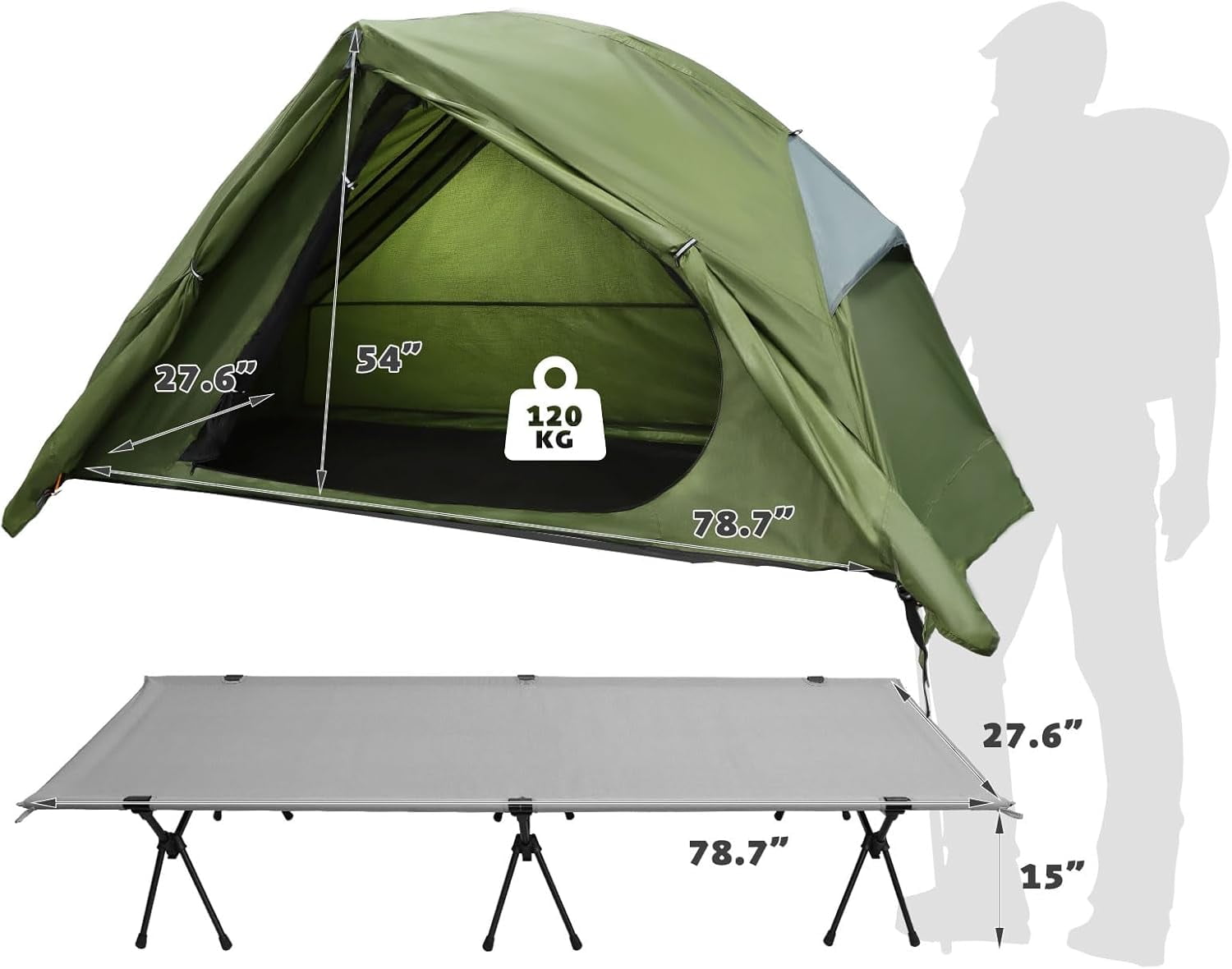- Simple Setup: Designed for one person, this cot tent measures 6.56 feet by 2.2 feet. It is easy to set up, making it ideal for beginners. The tent is lightweight, portable, and compact, making it great for camping, backpacking, hiking, mountain climbing, and other outdoor activities.