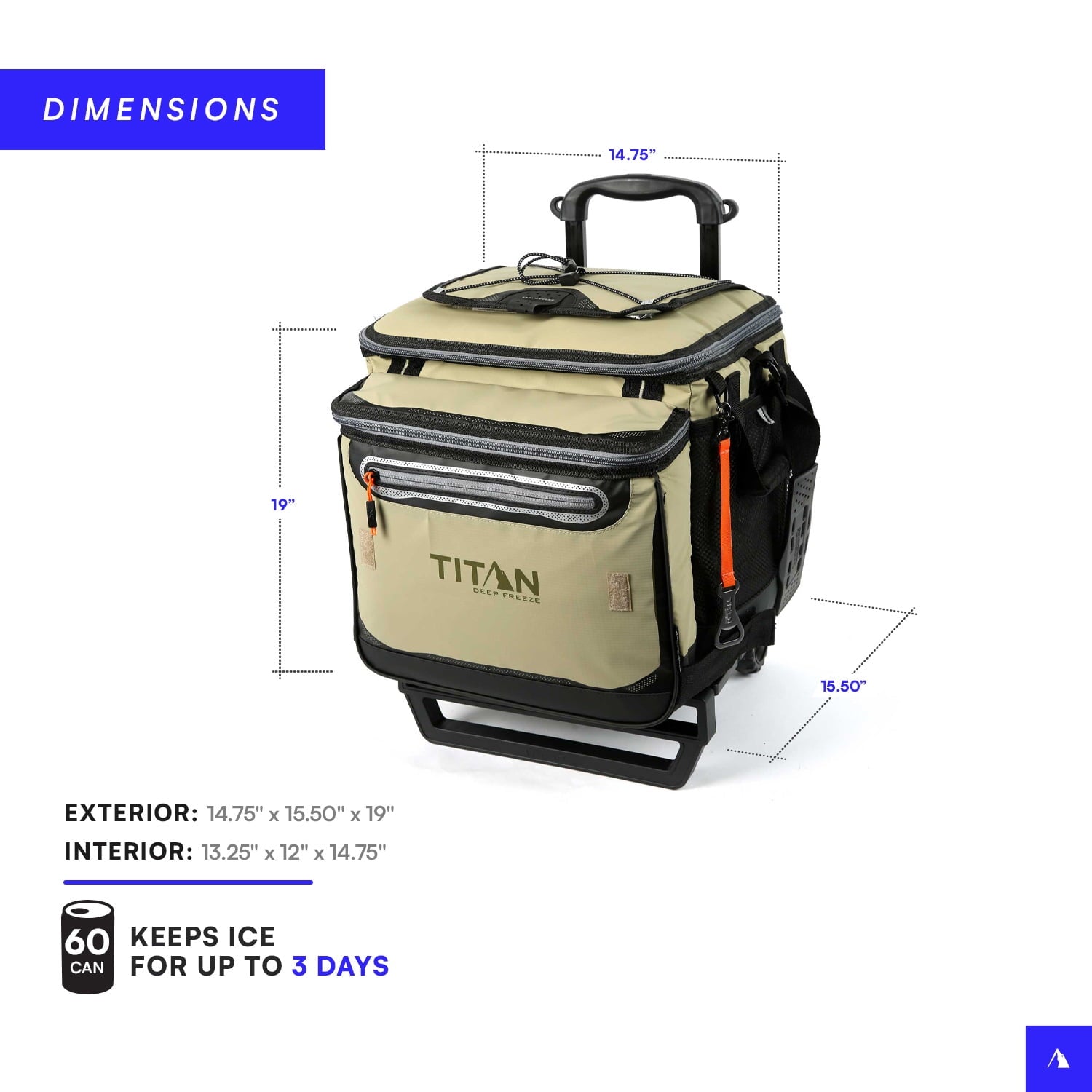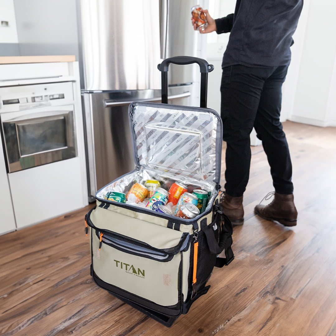 The Titan Deep Freeze® 60 Can/40 Quart Wheeled Cooler by Arctic Zone® keeps ice up to 3 days!