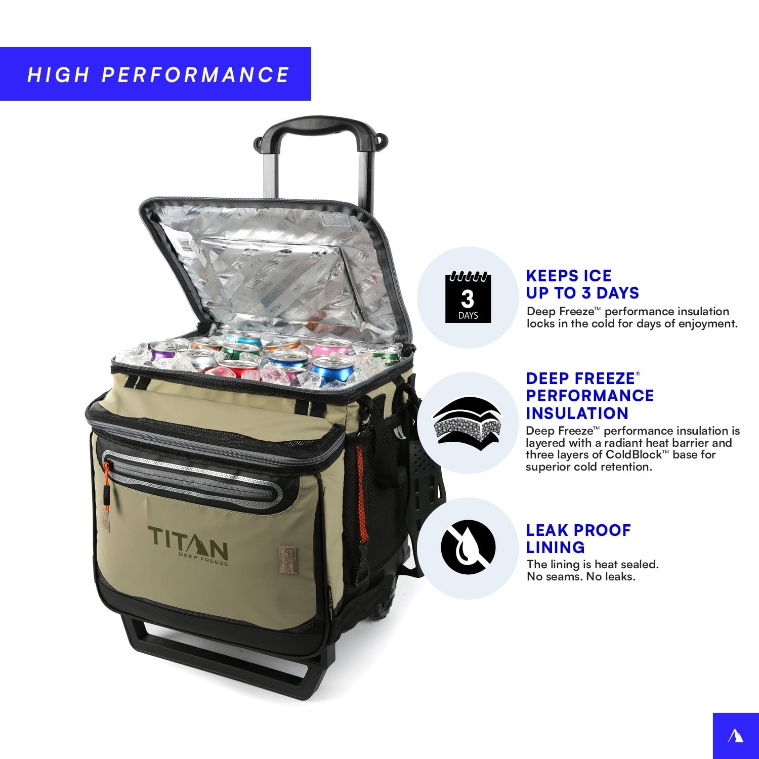 The interior of the cooler features Deep Freeze™ high performance insulation with radiant heat barrier and triple layer ColdBlock™ base for superior cooling. There is also an Ultra Safe® leak proof*, easy clean interior lining with Microban® to help protect against bacterial odors and stains.