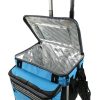Included with the cooler is a detachable AT Cart that can hold up to 100 lbs./45.4 kg. The cart features an expandable, extra wide base, oversized wheels and retractable, telescopic hook ‘n’ go handle. If you want to use the cooler without the cart, the Backsaver® adjustable shoulder strap with anti-slip shoulder pad centers load weight to help make the cooler easier to carry. Both the soft sided cooler and cart collapse for easy storage.
