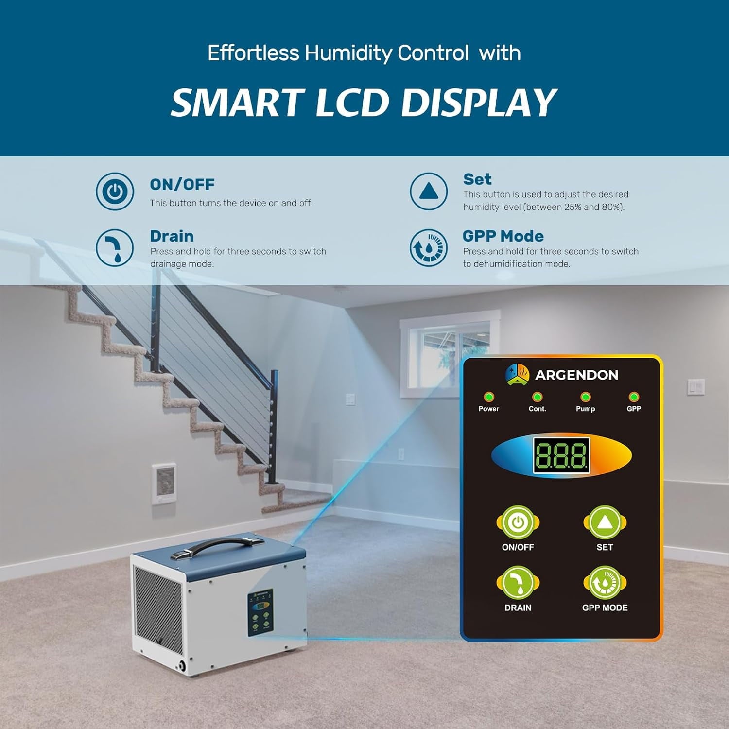 Home Dehumidifiers ARGENDON Crawlspace-Dehumidifier with Pump Energy Star Commercial Dehumidifier for Basement with Drain Hose