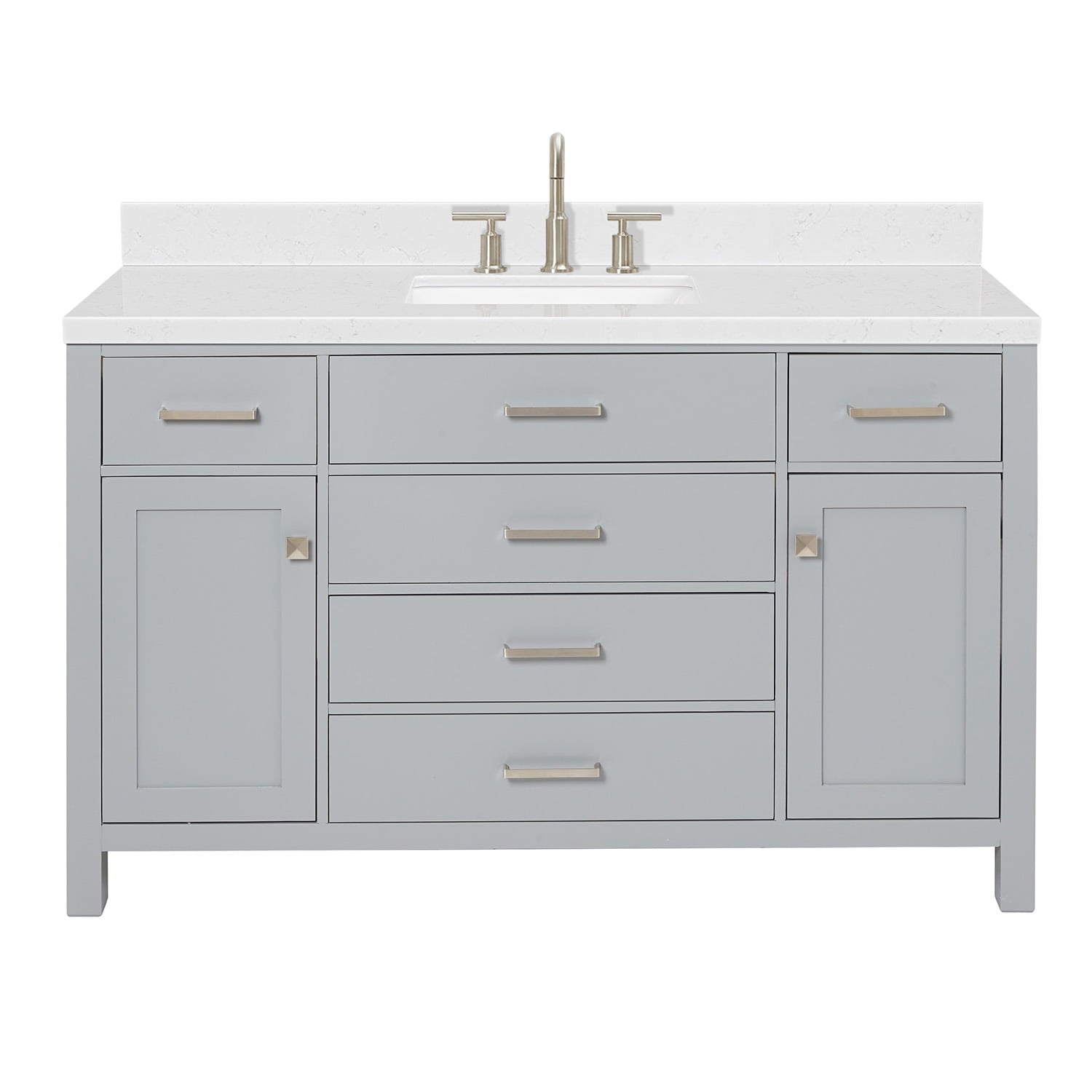 ARIEL Bristol 54 Inch Single Rectangle Sink Bathroom Vanity With Carrara White Quartz Countertop 1.5 Edge In Grey