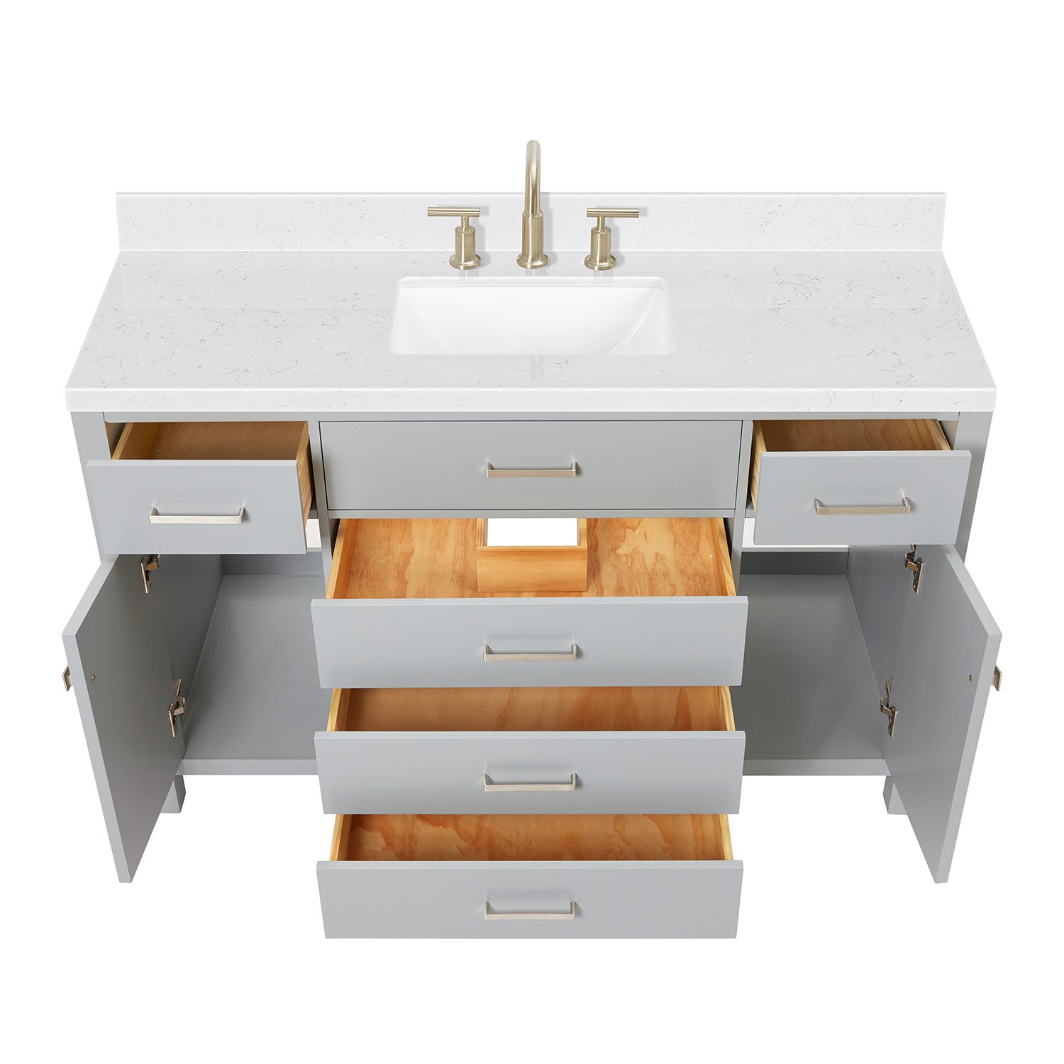 Home Bathroom Vanities ARIEL Bristol 54 Inch Single Rectangle Sink Bathroom Vanity With Carrara White Quartz Countertop 1.5 Edge In Grey