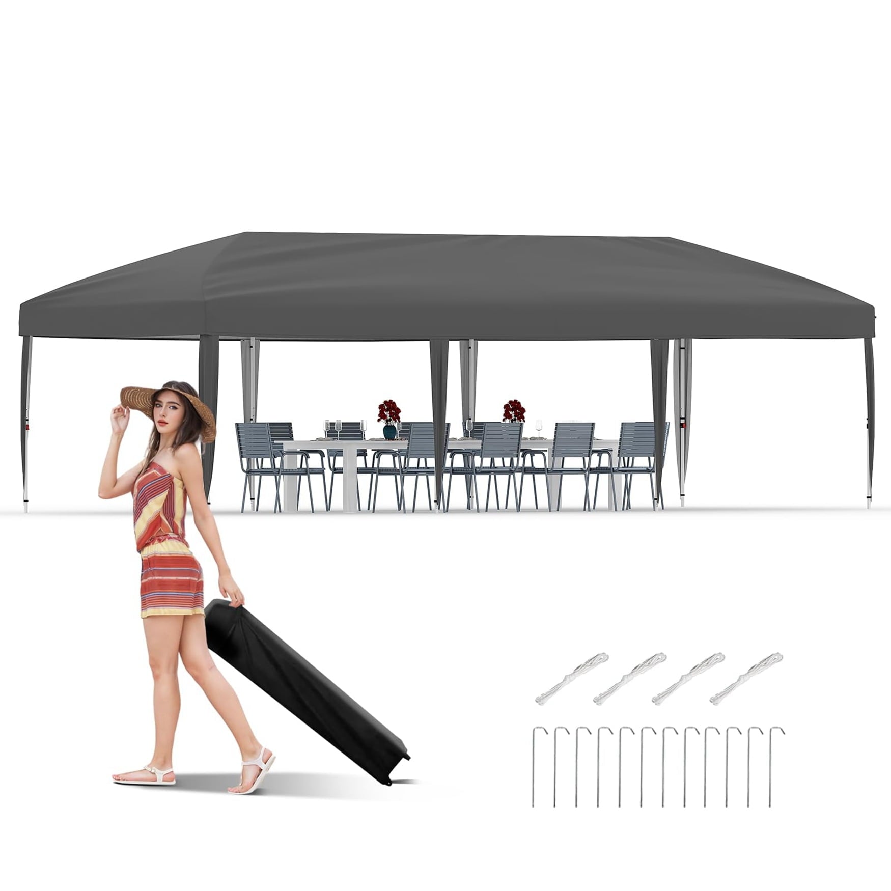 Versatile Use: Adjustable side walls adapt to different scenarios. Ideal for commercial events, beach or pool parties, camping, family gatherings, sales, and farm activities. For durability, secure in windy or rainy weather and avoid use in severe conditions.