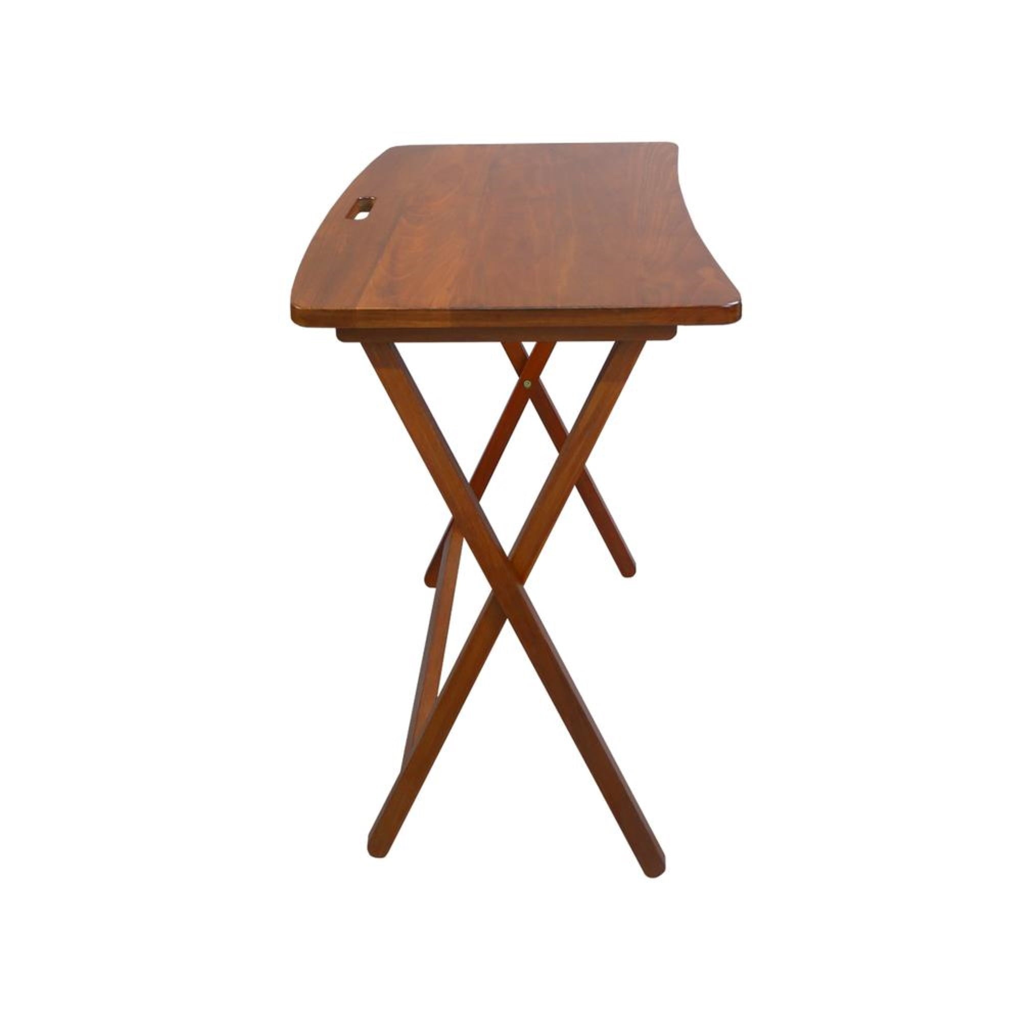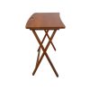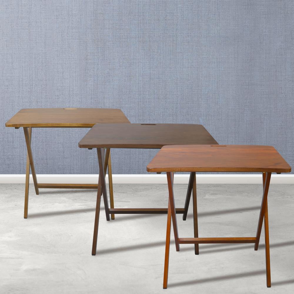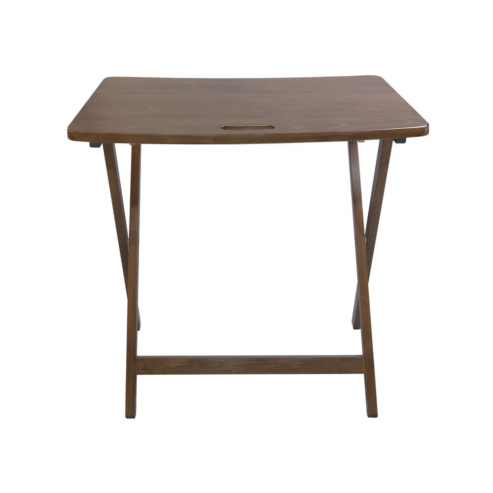 Rich American hardwood comprises this fortified Folding Table designed for your constantly changing needs. The Walnut color brings a rich and cozy appeal to your room. Fit with a convenient handle for easy movement. And the strength of the Solid American Gum wood enables versatility across a range of uses.