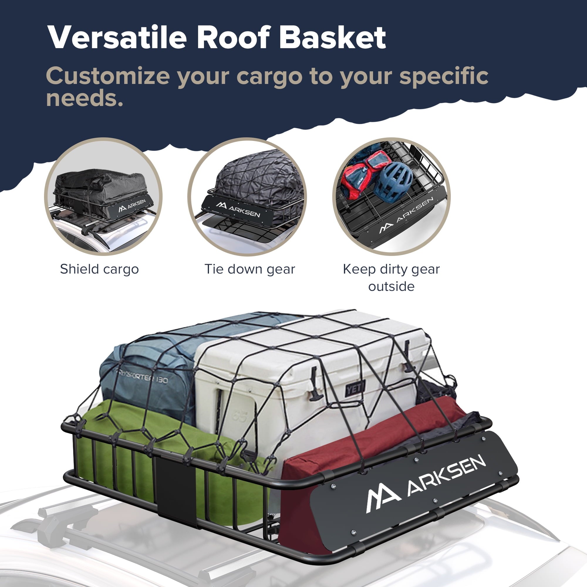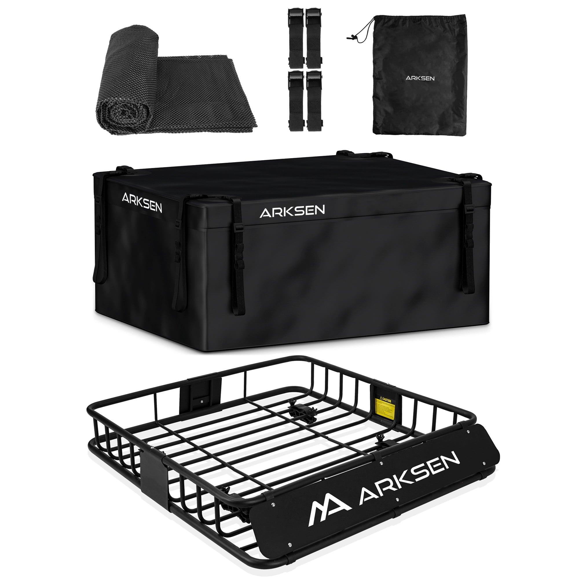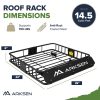 The ARKSEN 43 x 39 x 6 inch Heavy Duty Roof Rack Carrier is perfect for expanding your vehicle’s storage capacity. With a 150lb weight limit, it fits SUVs, trucks, MPVs, and crossovers, ideal for carrying camping gear, luggage, or equipment. Featuring secure metal bars, side rails, and a steel wind fairing, it ensures stability and reduces wind resistance. Easy to install with universal U-bolts, this durable rack offers a reliable solution for all your travel needs.