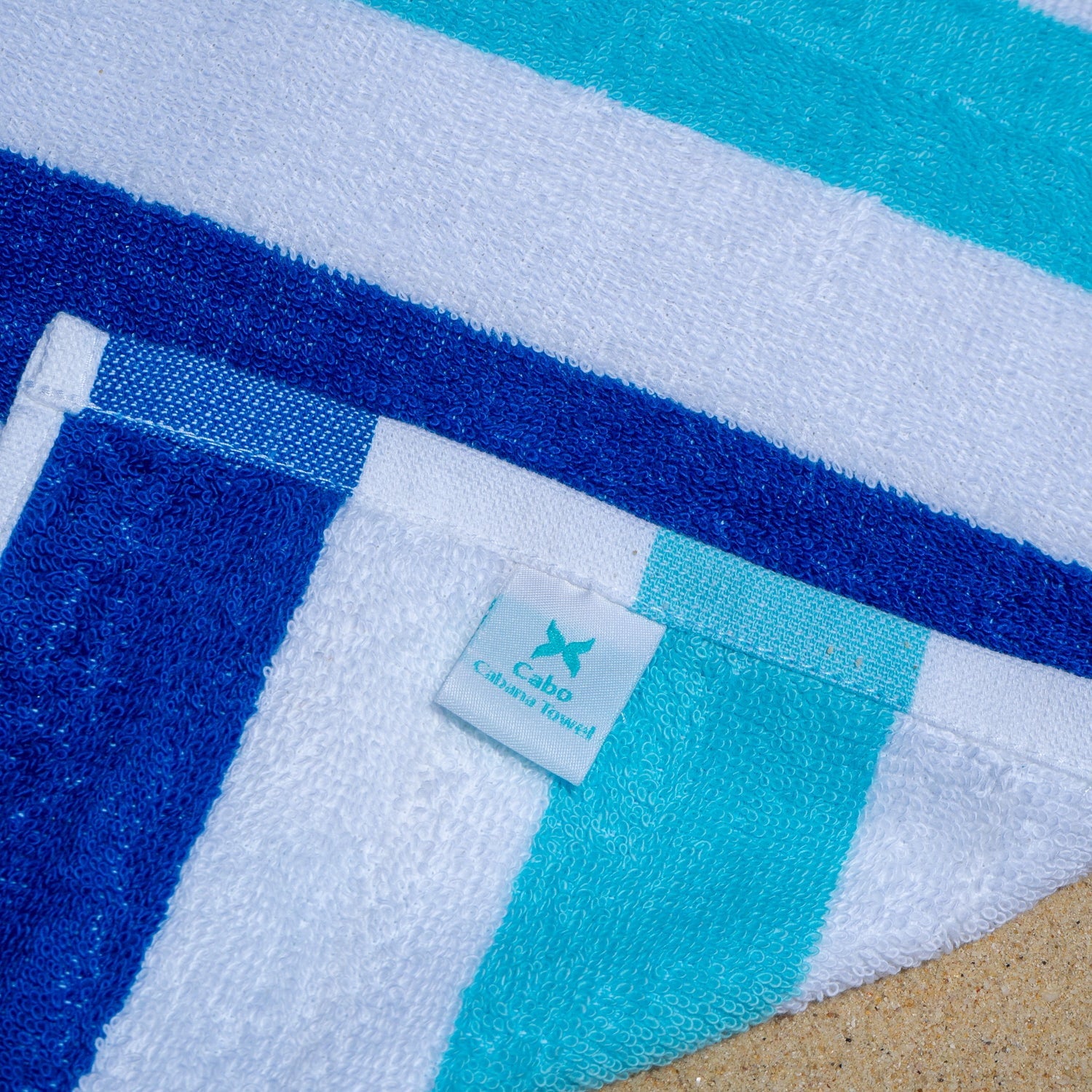 The Cabo Cabana Towels are available in a variety of captivating color combinations. These towels are sure to make a statement with a white base color and alternating cabana stripes in seven vibrant colors. The bright and unique color combinations will set you apart from the crowd, whether at the beach, by the pool, or at a resort.