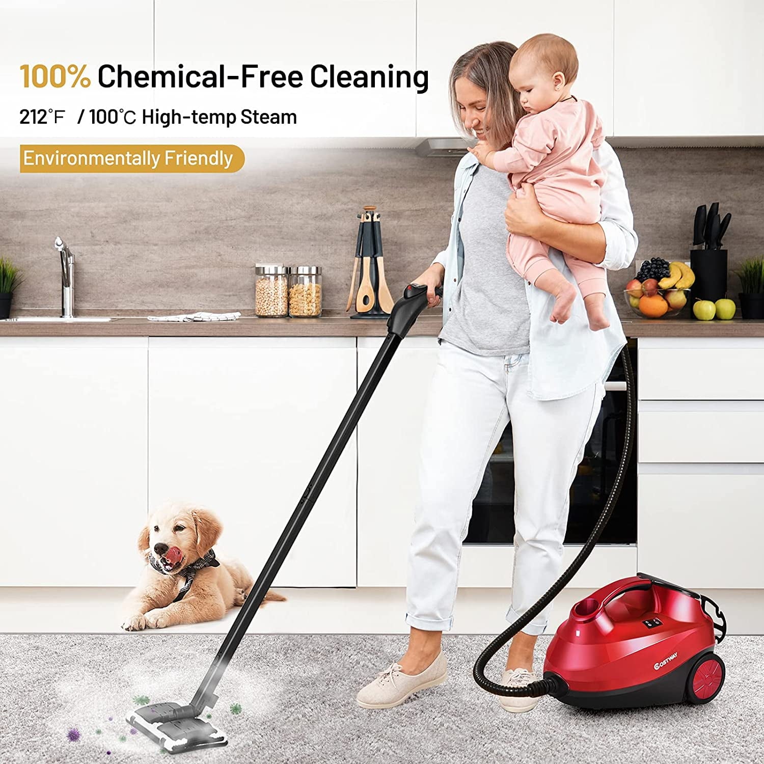 - [Efficient Deep Cleaning]: With high-temp steam up to 212°F, the 2000W steam cleaner can easily remove all kinds of dirt and oil stains on the various surface, 100% chemical-free with no harmful fumes or residue, assure child & pet safe.