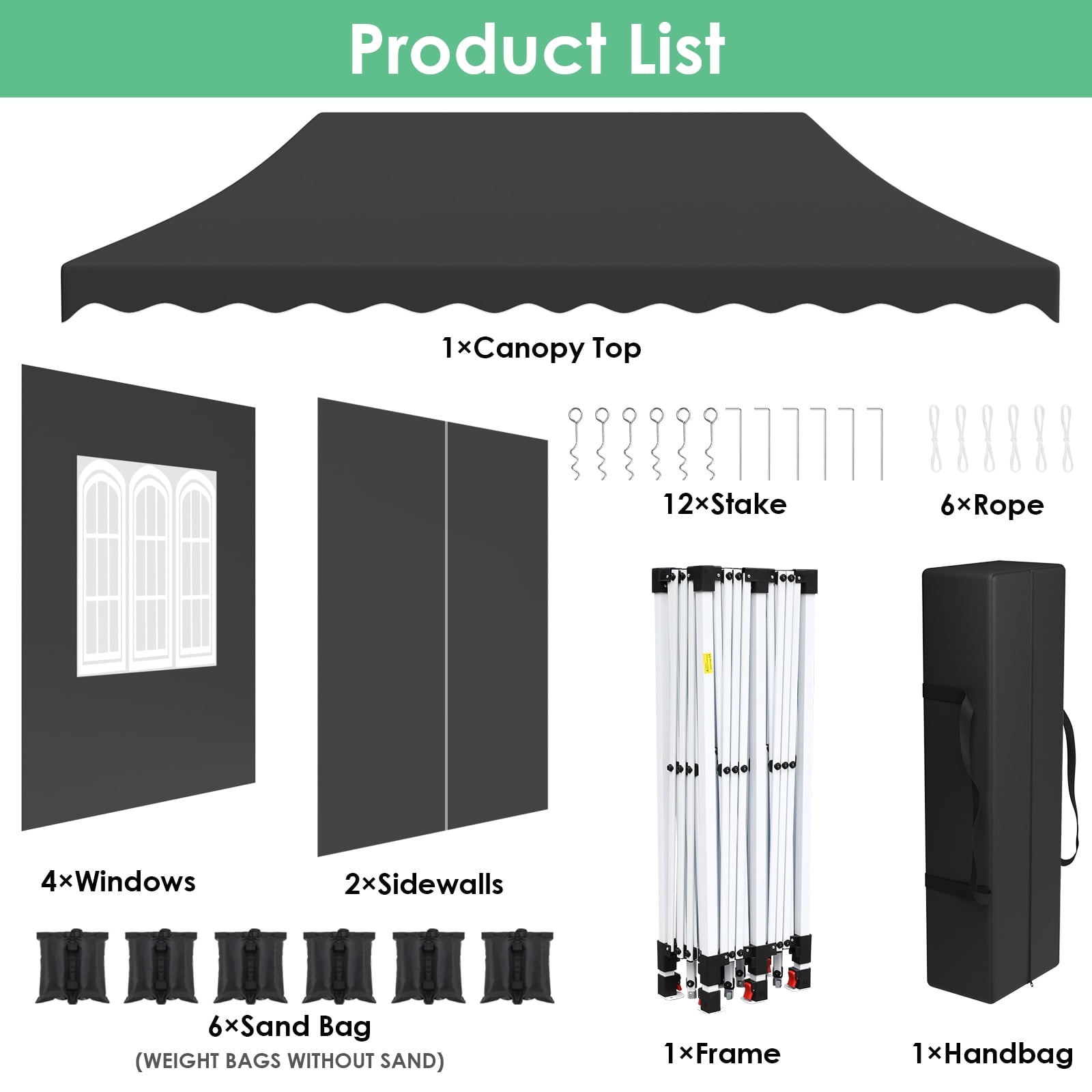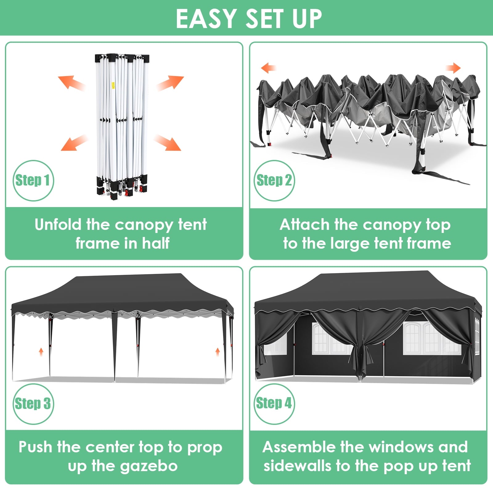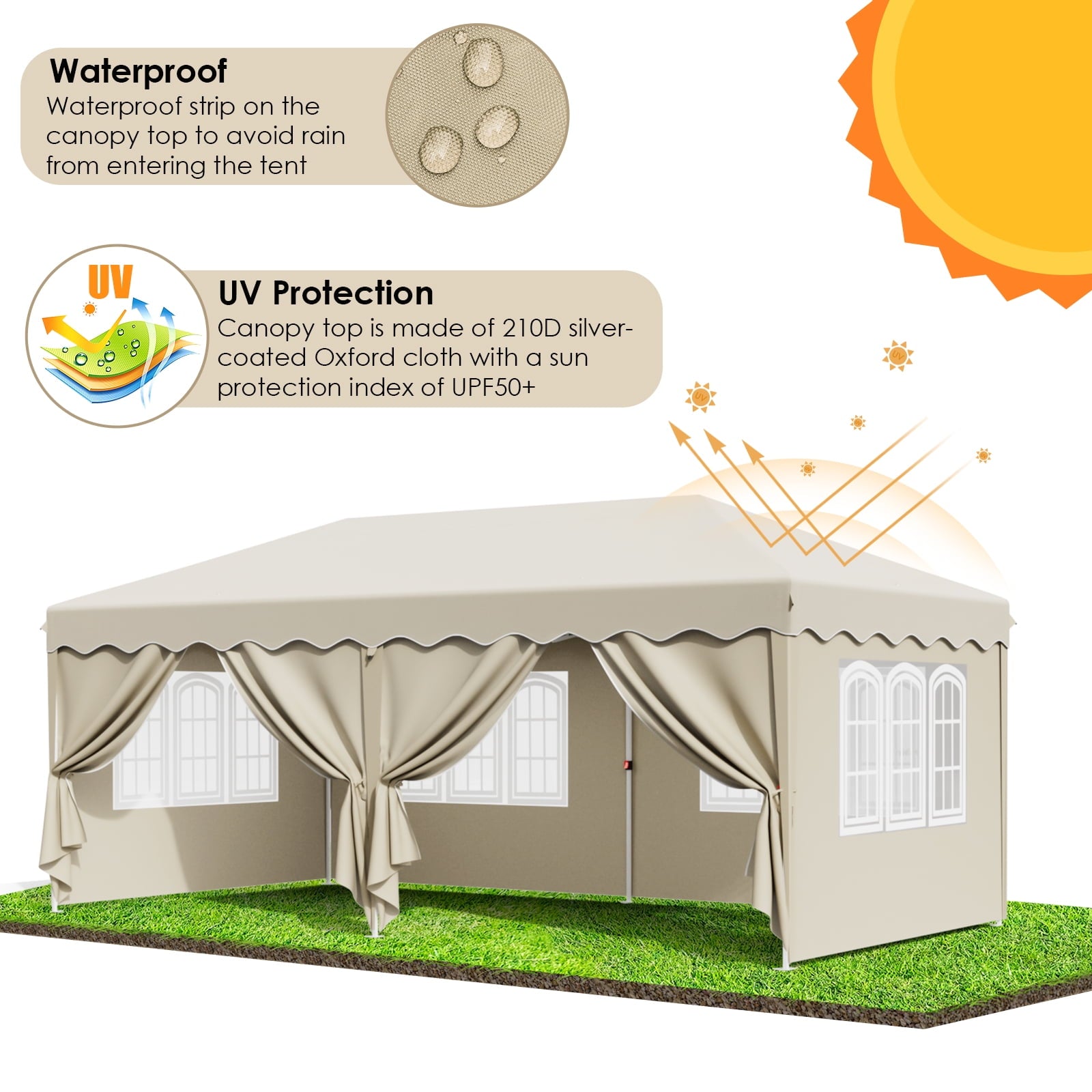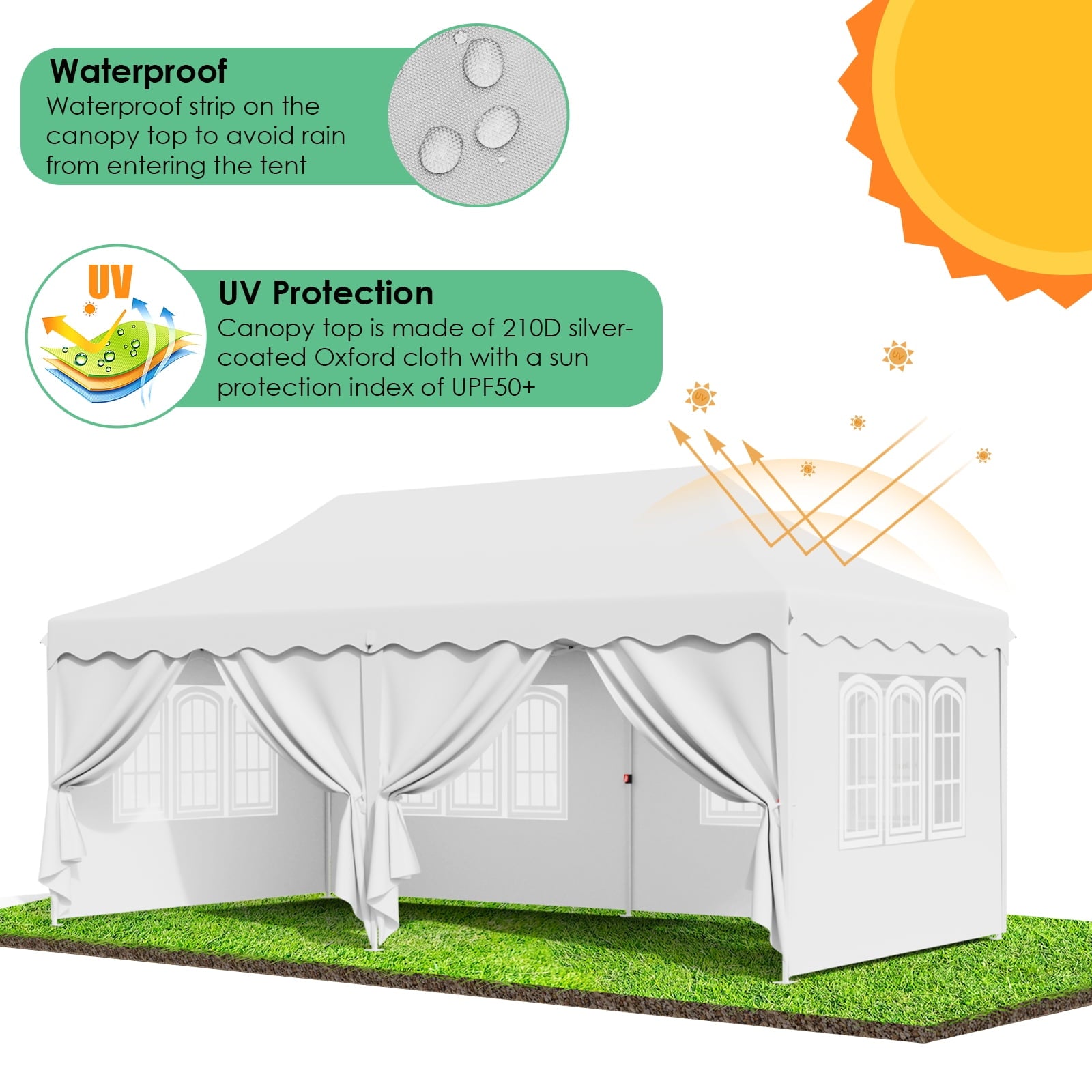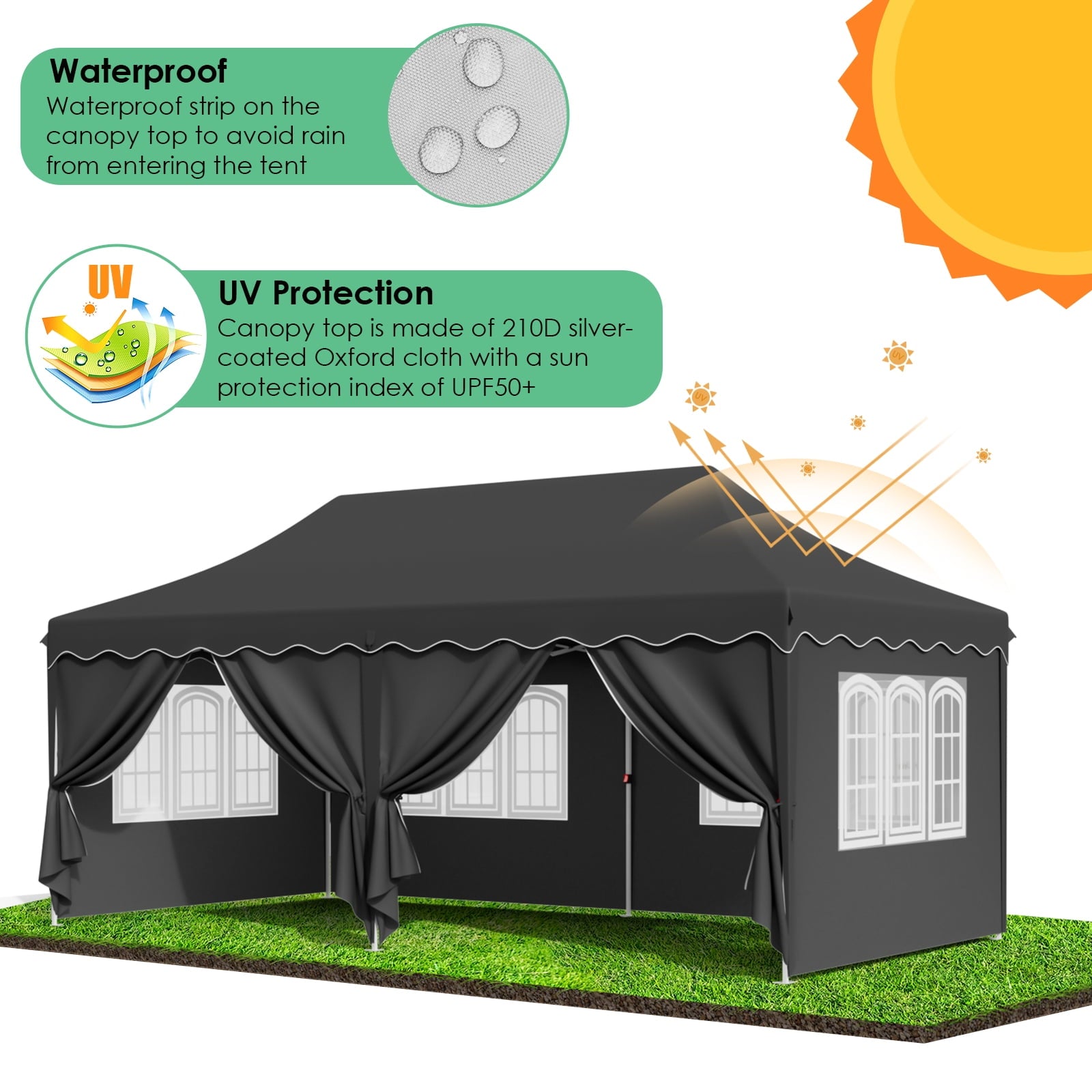 Arlopu 10×20ft Pop up Canopy Party Tent Outdoor Protable Instant Shelter Canopy Gazebo with 6 Removable Sidewalls