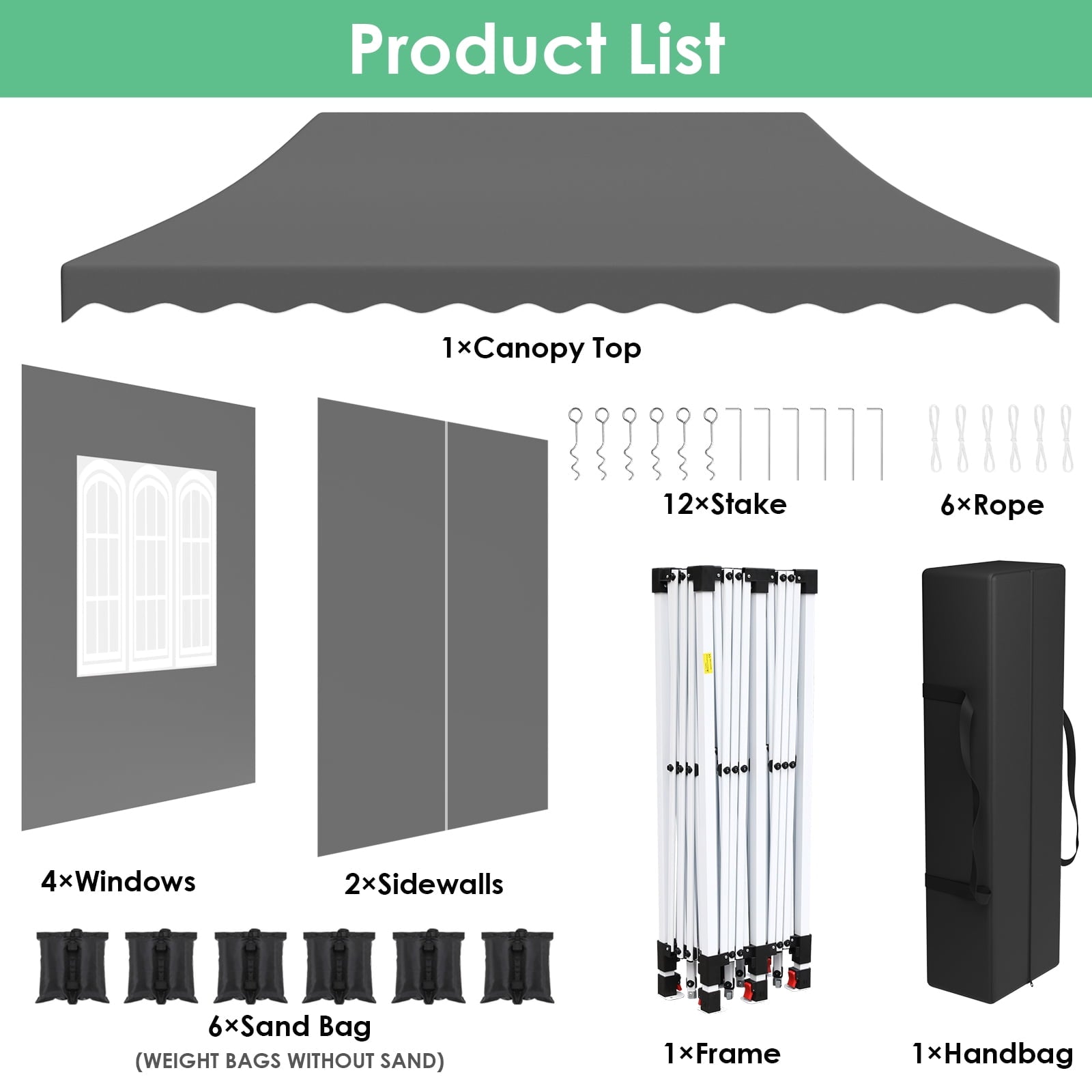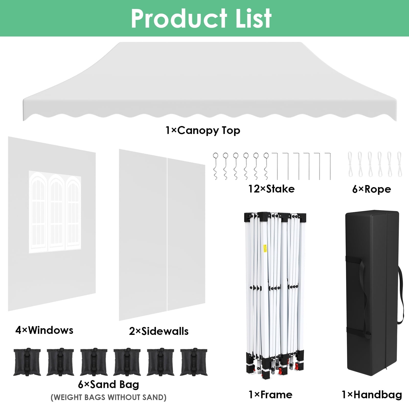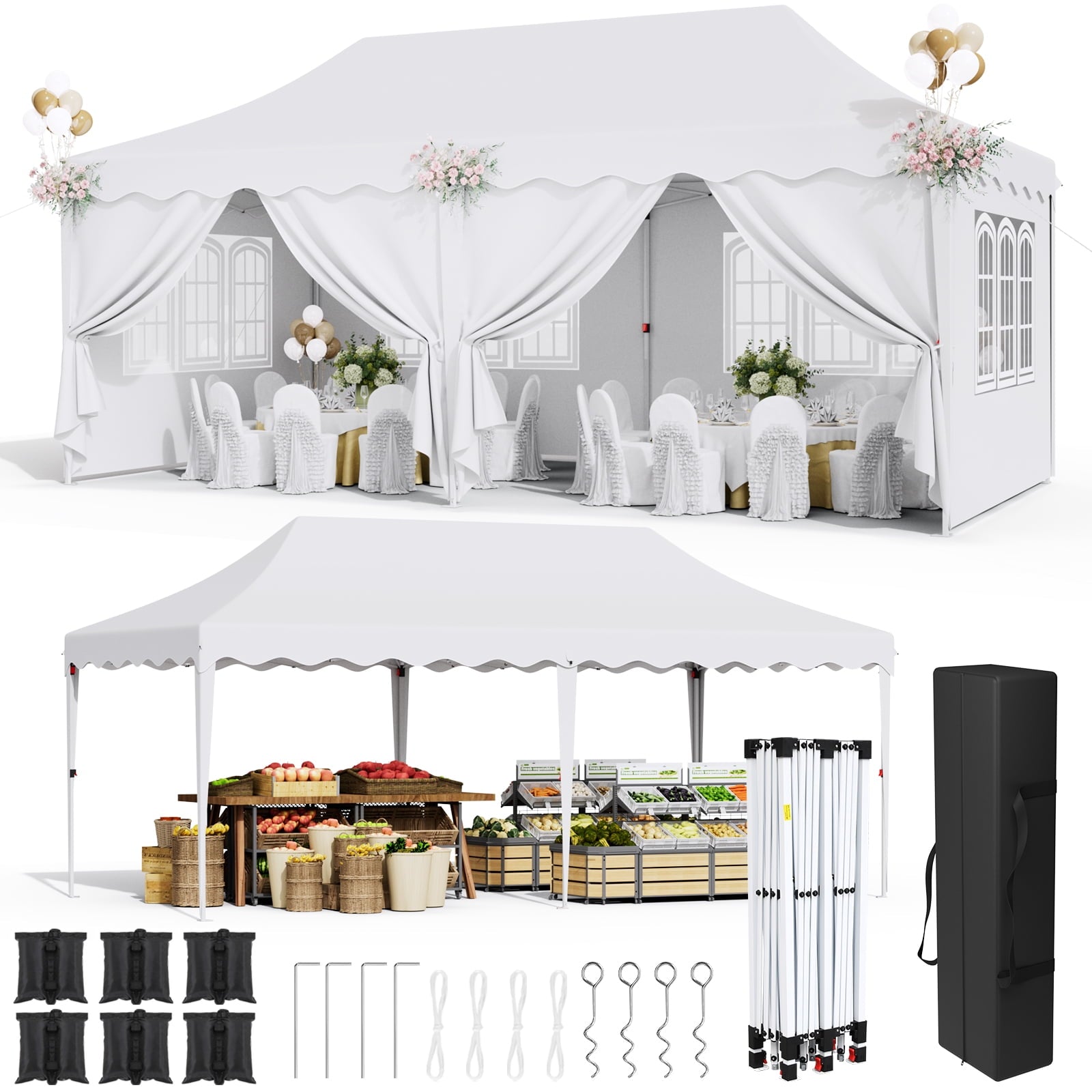Arlopu 10’x20′ Pop Up Canopy Tent with 6 Sidewalls, Ez Pop Up Outdoor Canopy for Parties, Waterproof Commercial Instant Tent with Carry Bag, Adjustable Height