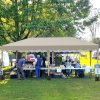 Outdoor pop up canopy tent is made of 600D Oxford cloth and metal frame.