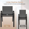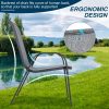 Arlopu patio dining chairs are equipped with rust and weather-resistant metal steel frames, simple, strong and durable. The seat part of the chair is made of premium textilene fabric, which has the advantages of high tensile strength, aging resistance, abrasion resistance, good breathability and long service life. The curve design of the backrest of each chair is in line with the principle of ergonomics, which can provide you with ultra-comfortable lumbar support, coupled with the armrests on both sides, allowing you to sit for a long time without getting tired.