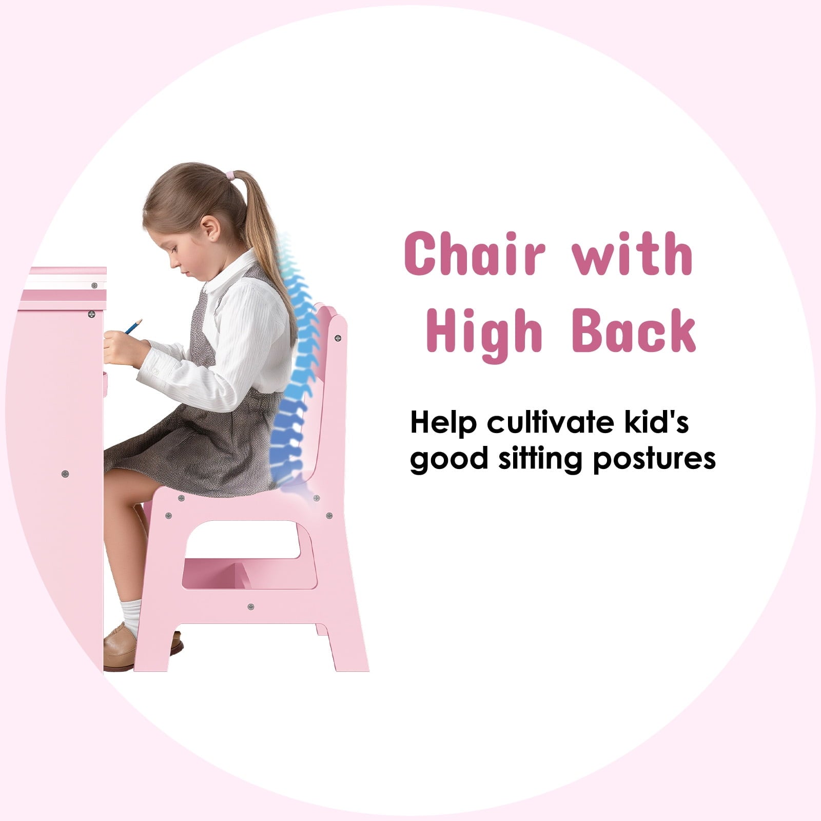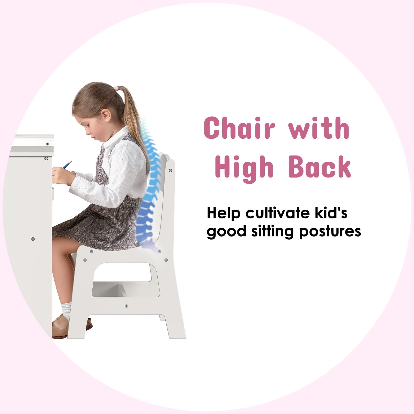 • Charming Color Options: Available in classic white and pink, the Toddler Makeup Table and Chair blend seamlessly with any kids’ room decor, creating a harmonious space.