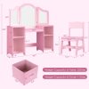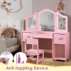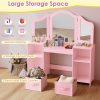 Home Vanity Tables & Table & Bench Sets Arlopu Kids Vanity Set with Stool, Wooden Makeup Vanity Desk Children Dressing Table with Chair, Tri-Folding Mirror, Storage Cabinet & Drawers