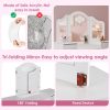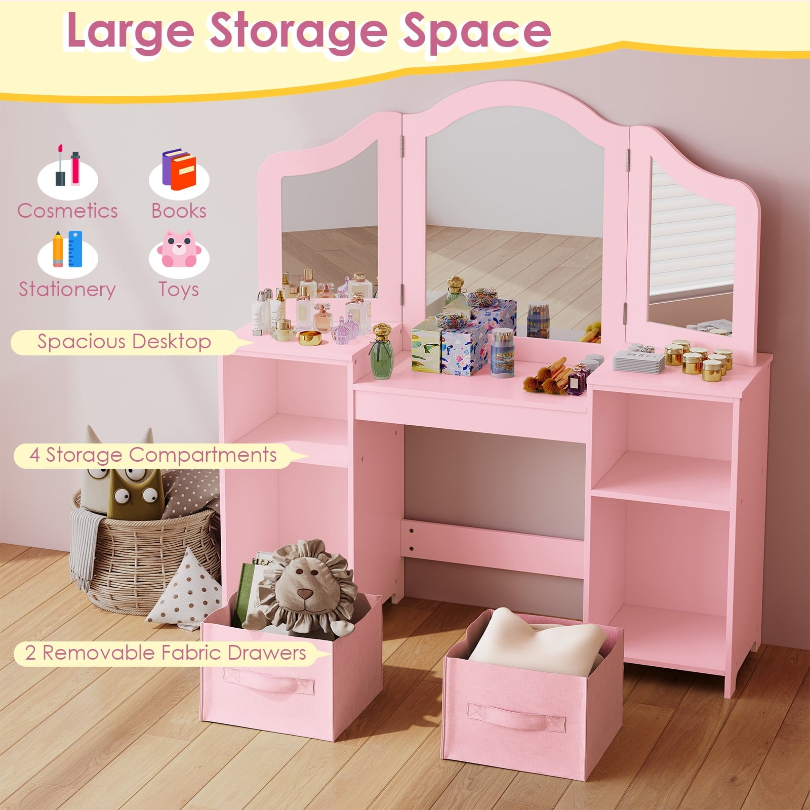 • Flexible Mirror Design: This Kids Makeup Dressing Set has a detachable triple-fold mirror. The adjustable 3-panel design provides a wide dressing view. Remove the mirror to turn the table into a study desk.