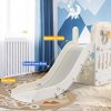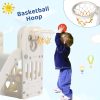 Arlopu Sturdy Toddler Slide with Basketball Hoop Plastic Kids Slide Climber with Anti-Slip Steps Indoor Outdoor Children Toy Playground