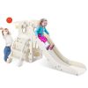 Home Playground Slides Arlopu Sturdy Toddler Slide with Basketball Hoop Plastic Kids Slide Climber with Anti-Slip Steps Indoor Outdoor Children Toy Playground