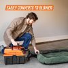 • CONVERTS TO BLOWER: Use the included inflator nozzle for air mattresses, pool floats, etc. COMPLETE VAC ORGANIZATION: On-board hose and accessory storage. TOOLBOX DESIGN: Compact design for portability and easy storage