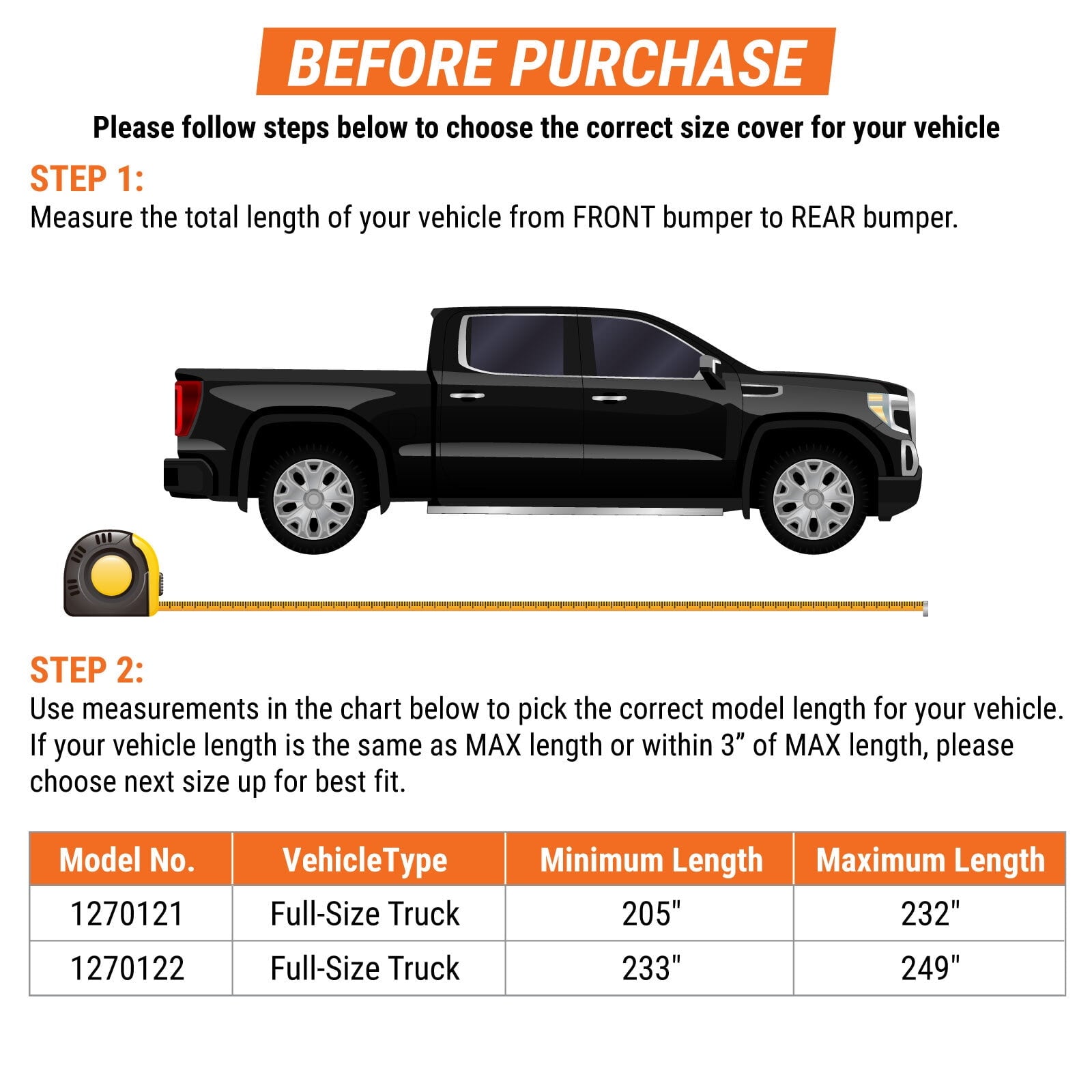 - High Wind Protection System – Our cover is designed with 6 points of security that will keep your cover securely on the vehicle during strong high winds; Can be easily adjusted to create a semi-custom fit your vehicle