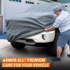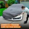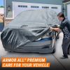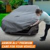 Armor All Car Cover provides Premium All Weather Protection. Heavy-Duty material ensures maximum protection from all types of weather conditions such as Rain, Snow, Dust, Tree Sap, Bird Droppings, and more. Premium multi-layer material allows the car cover to breathe. This prevents moisture build-up under the cover that can cause mold and mildew that can cause damage and stains to vehicle finish. The car cover also features a 6-Point High Wind Protection System, this helps the car cover to remain securely positioned on the vehicle during strong winds. Overall, this car cover offers maximum protection and is a great investment for car owners who want to keep their vehicles in top condition. As a trusted brand in automotive care, Armor All has been a leader in appearance products for over 50 years, providing customers with quality products and peace of mind. See size and application chart in the image gallery for more size information.