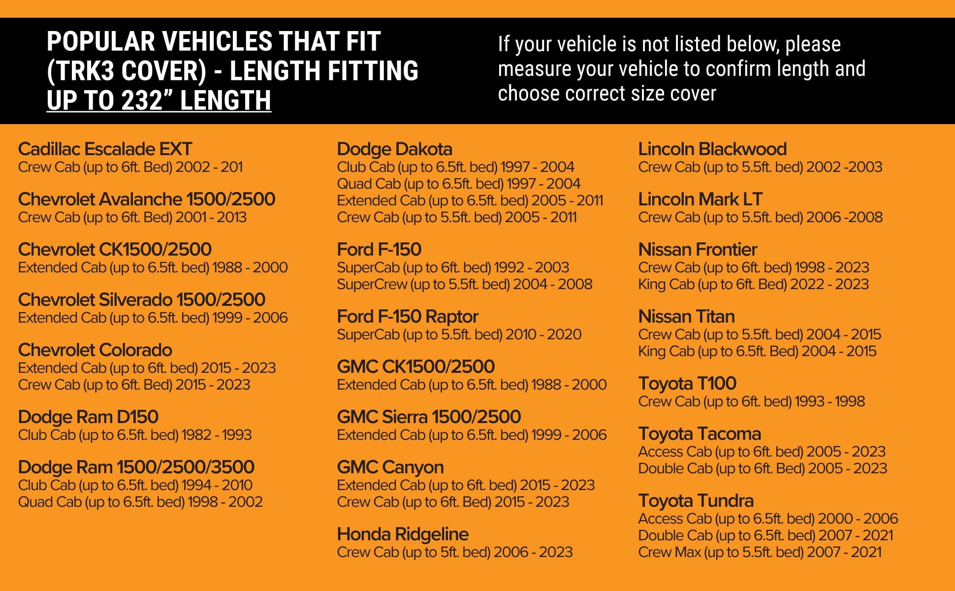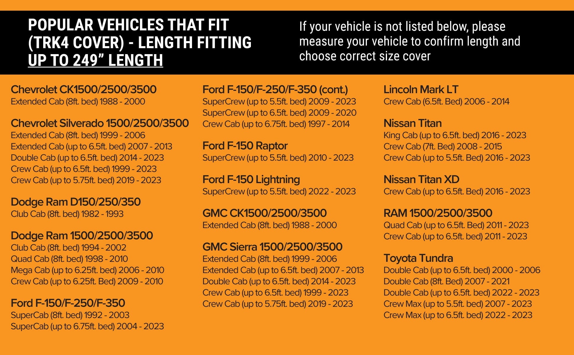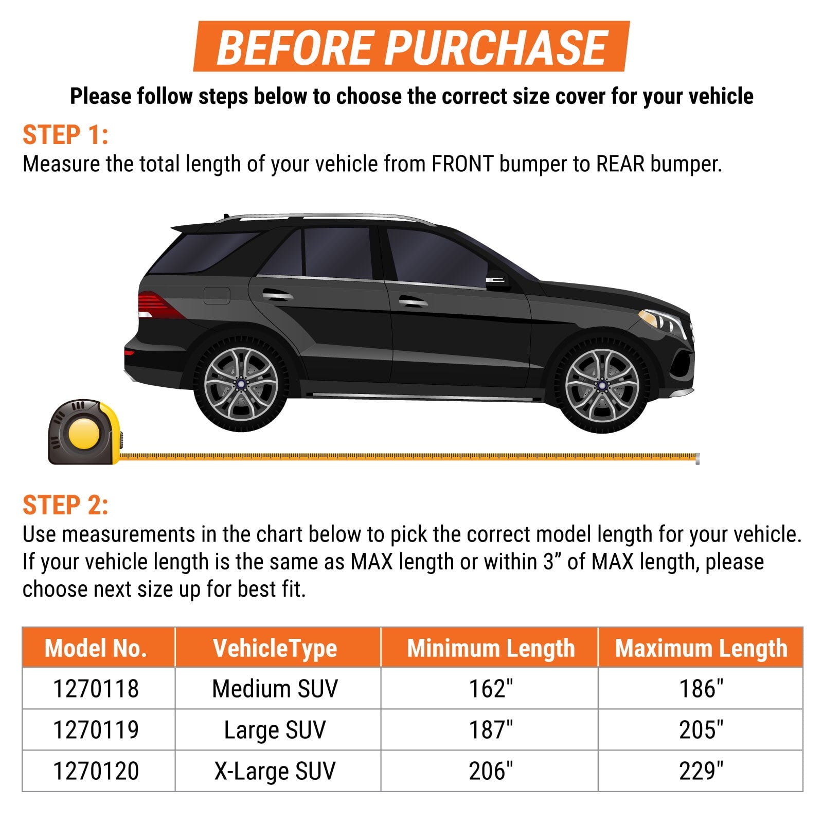 - For your Car, refer to chart in image gallery on how to measure your vehicle.