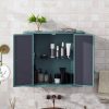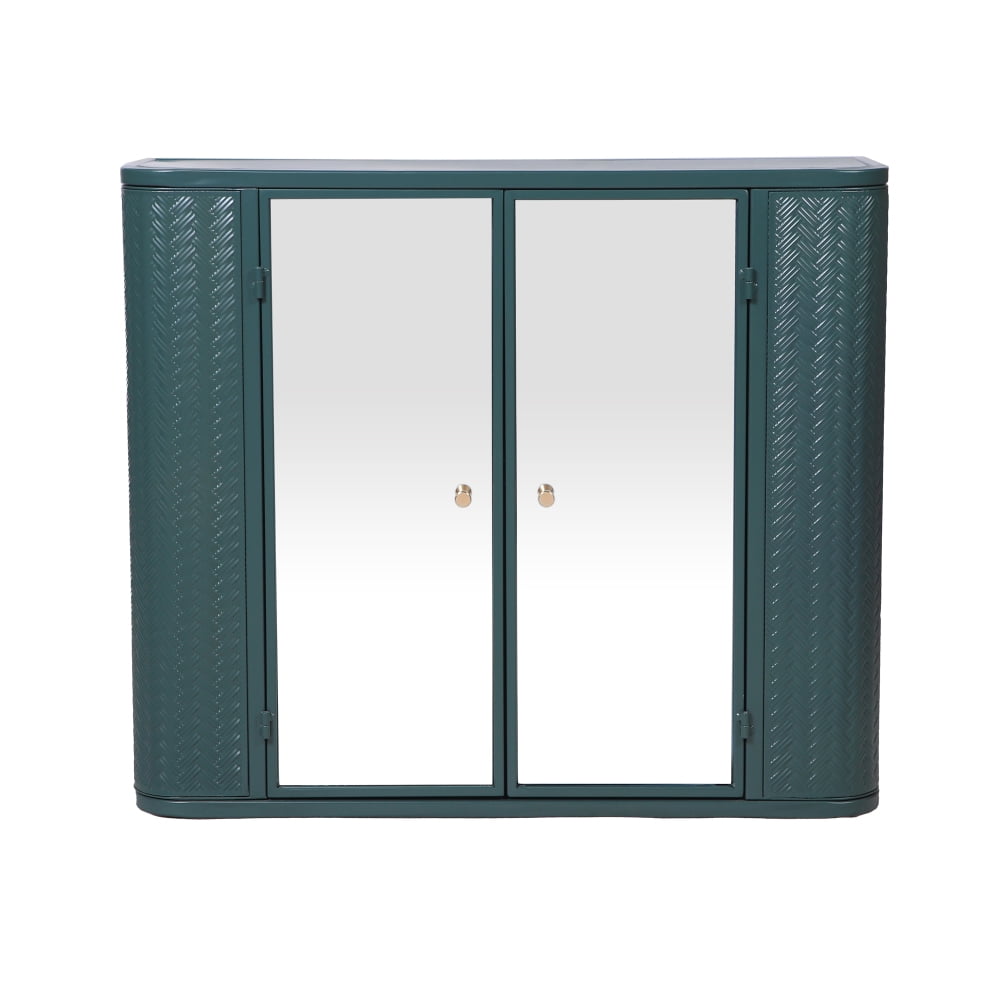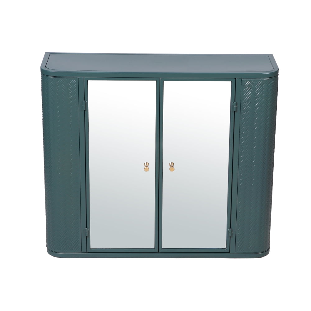 Army Green Wall-Mounted Bathroom Cabinet with Mirror, 2 Mirrored Doors & Open Shelf, Farmhouse Metal Frame Storage Cabinet with Open Compartment for Vanity, Toilet & Over-the-Sink