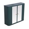This functional wall cabinet features two full-length mirrored doors that transform your daily routine while providing hidden storage. The interior shelves neatly organize toiletries and grooming essentials, eliminating countertop clutter. The reflective surfaces create an illusion of space while offering practical utility – perfect for small bathrooms or shared vanity areas. - “Wall-Saving Design for Modern Homes”