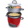 - Accessories included: steam tray, rice measuring cup, and serving spatula