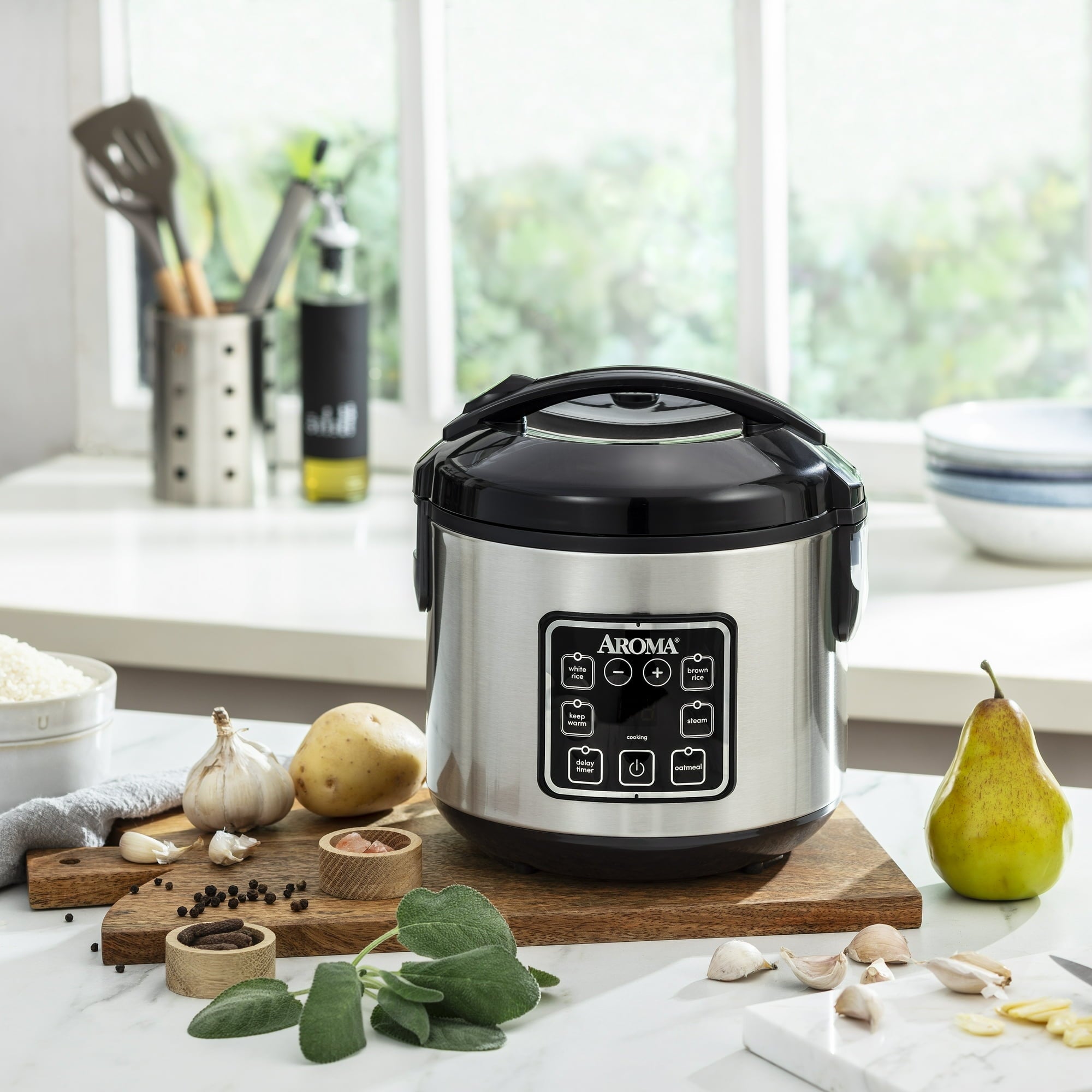 - An array of preset functions for every kind of meal: White Rice, Brown Rice, Steam, Oatmeal
