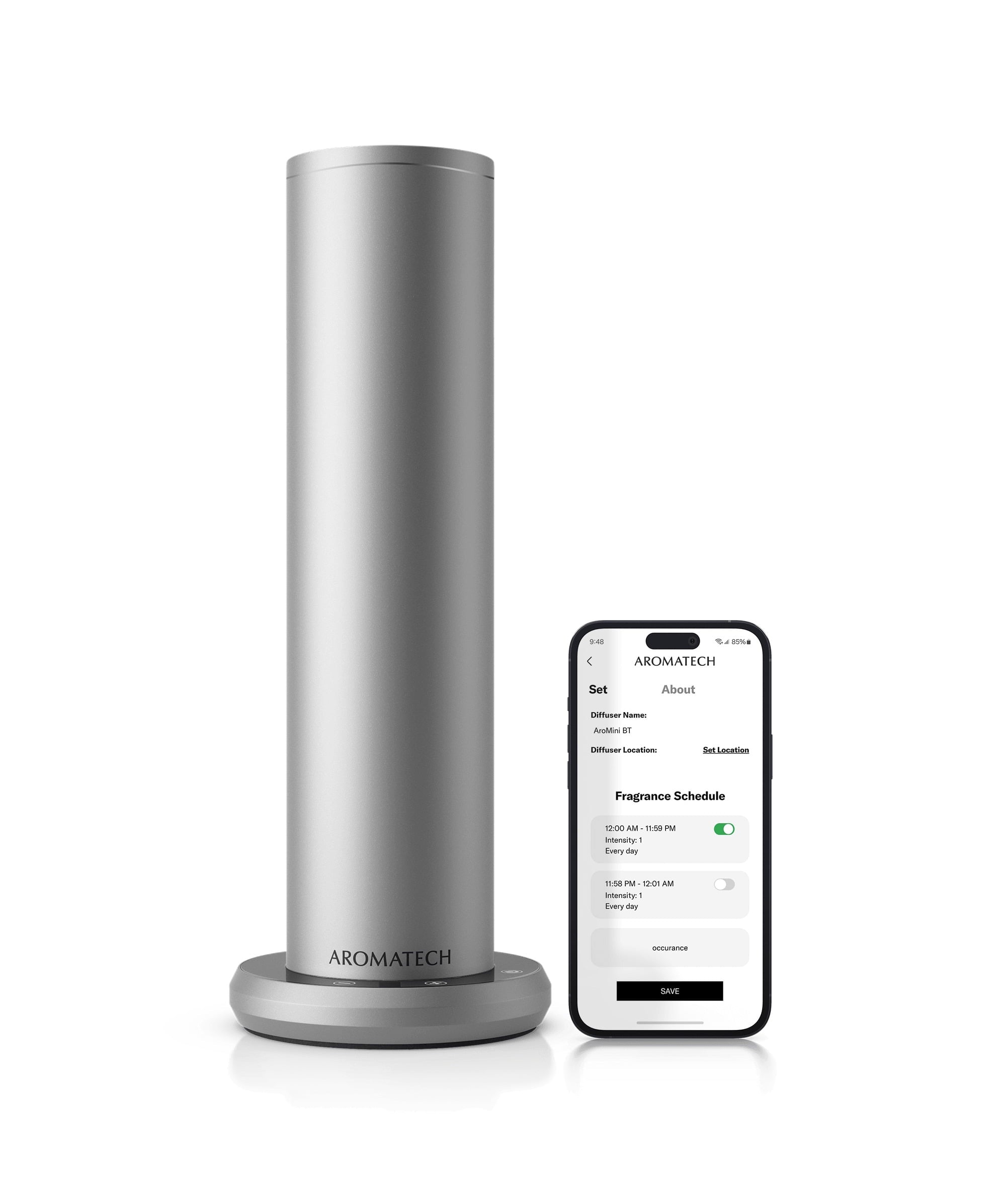 - WE UPGRADED OUR MOST VERSATILE DIFFUSER: Featuring premium nebulizing technology, the AroMini BT Plus scents spaces up to 1,500 sq. ft. while still working seamlessly in smaller rooms. App controlled and whisper quiet, it will make your home, office, boutique or studio smell like a luxury hotel. Now you can easily screw in a 60 mL AromaTech scent bottle (sold separately) instead of decanting.
