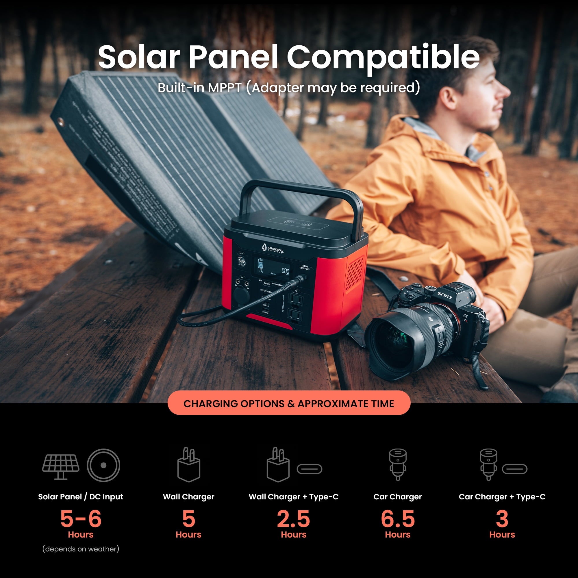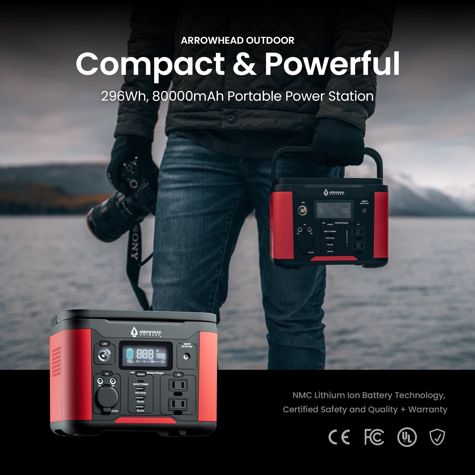 Are you looking for a reliable and versatile power station that can keep your devices and appliances running in any situation? Whether you need backup power for your home, RV, camping, or CPAP machine, the ARROWHEAD OUTDOOR 296W Portable Power Station is the perfect solution for you. This solar generator features a 120V/300W (Peak 600W) pure sine wave AC outlet that can power up to 7 devices at once, including laptops, TVs, fans, lights, and more. It also has a USB-C PD 60W port that can fast charge your smartphone, tablet, or laptop in no time. Plus, it comes with a durable and waterproof case that protects it from dust, water, and shocks. The ARROWHEAD OUTDOOR 296W Portable Power Station is easy to recharge with any compatible solar panel (sold separately), or by plugging it into a wall outlet or a car cigarette lighter. With its lightweight and portable design, you can take it anywhere you go and enjoy the peace of mind that comes with having a reliable power source. Don’t let a power outage or an emergency ruin your day. Order the ARROWHEAD OUTDOOR 296W Portable Power Station today and experience the difference of having a solar generator that can handle anything.
